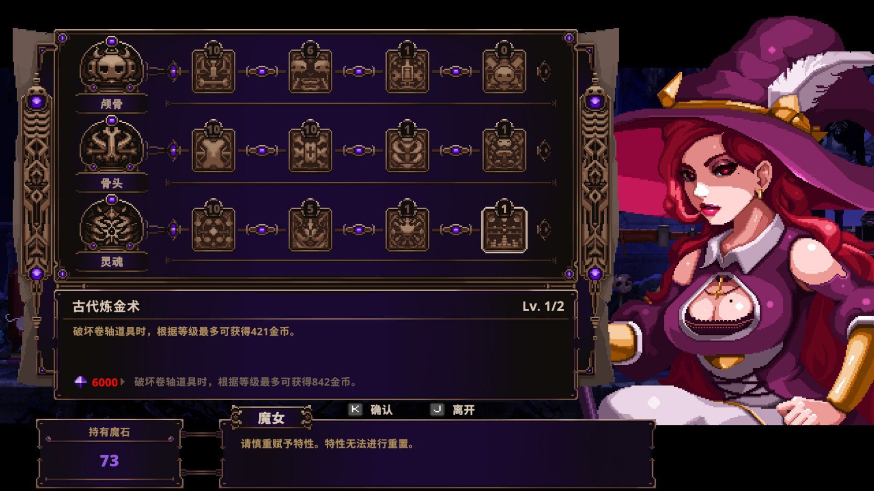 是我比较喜欢的一款肉鸽,画风精美,以“魔物”的身份与杀入魔物领域的人类斗争。游戏内有多种多样的装备,同羁绊的装备会发挥特殊效果,还有“速度”“平衡”“力量”三个不同种类的“头骨”(等同于别的肉鸽游戏的武器,但是攻击方式以及技能都与头骨绑定。可以通过“解救”npc的方式升级或更换技能)个人认为在“配装”上比起死亡细胞更简单易懂。