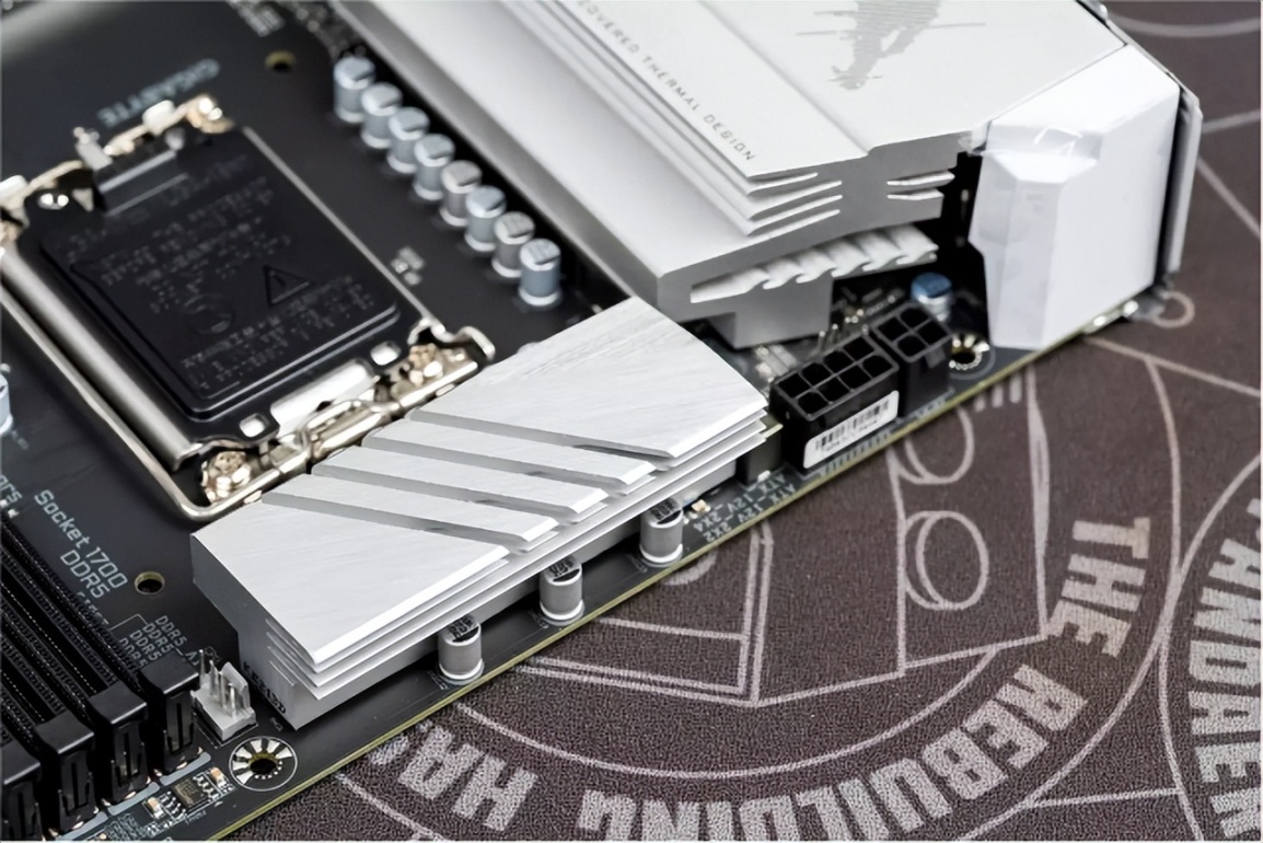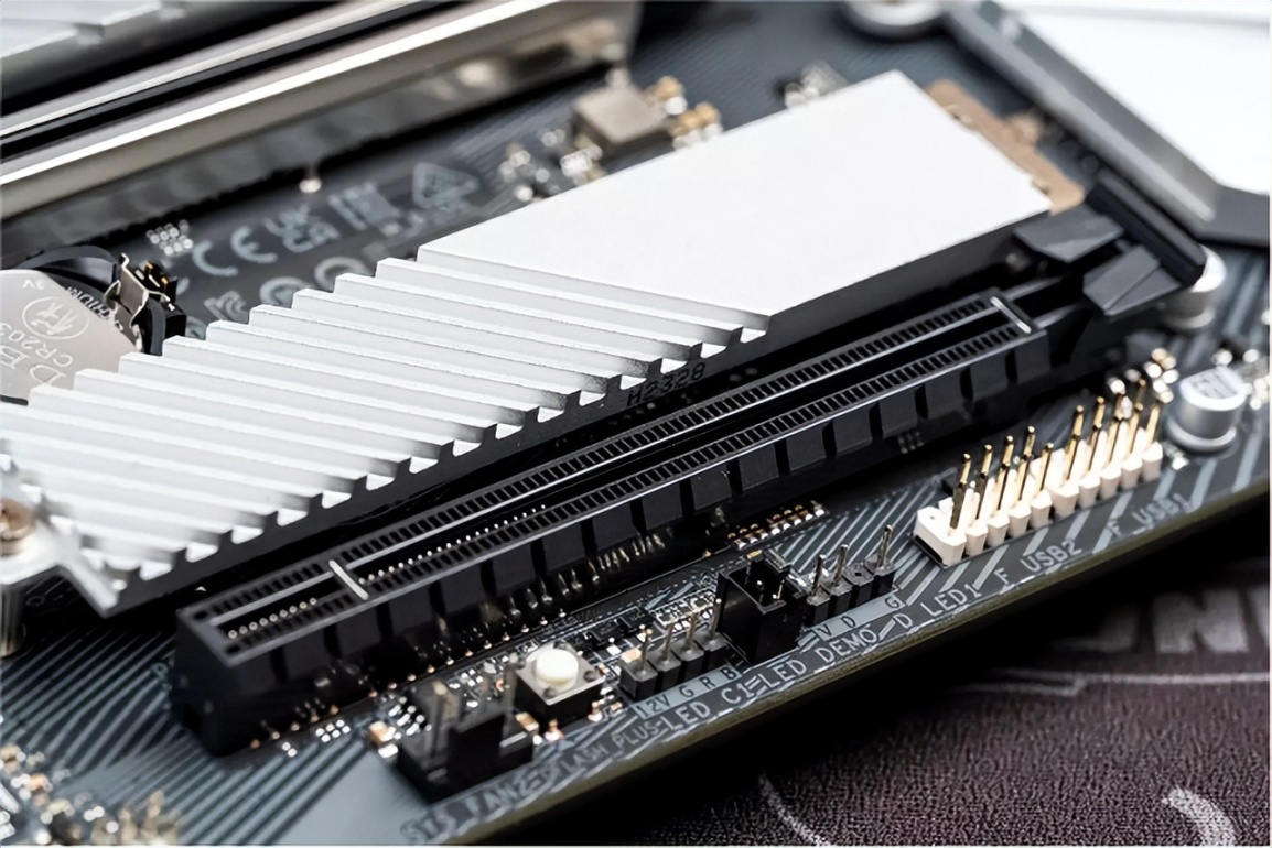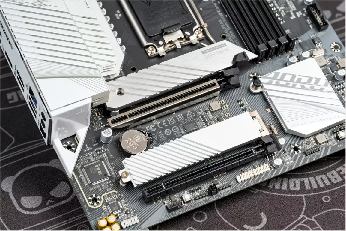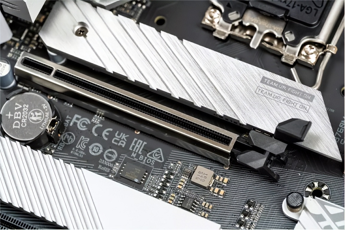 第二组PCIe和M.2硬盘插槽都是由B760芯片组提供的扩展。它们的规格都是PCIe4.0×4,用来接一些扩展卡和固态硬盘等硬件,在速度上基本都是能跑满的。