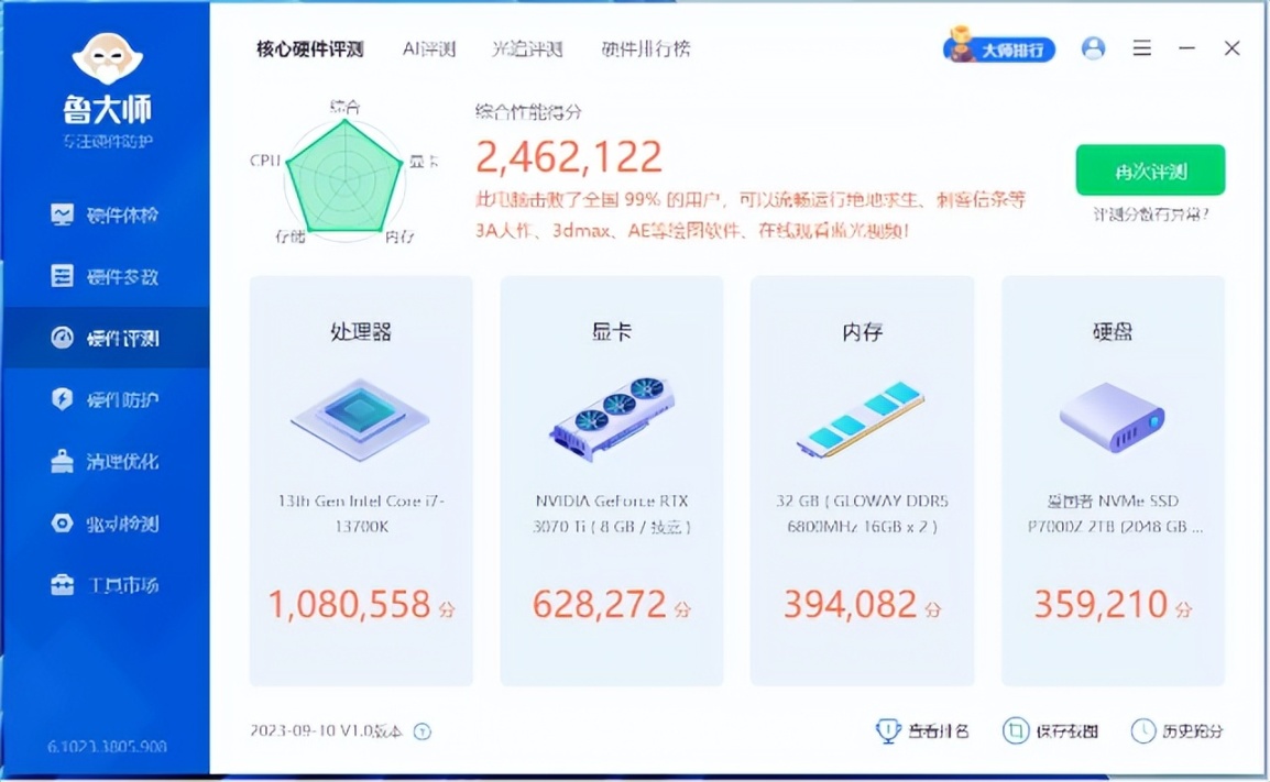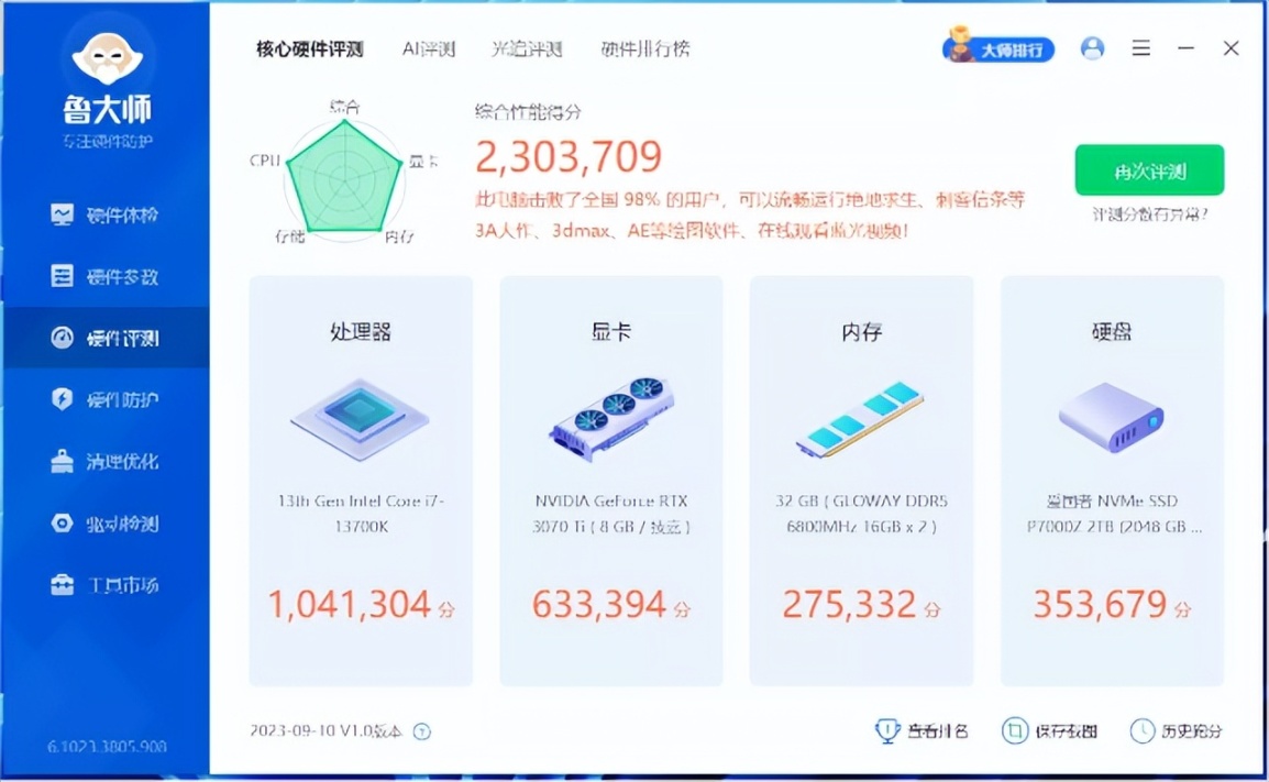 在鲁大师的测试中内存得分提升到约39.4万分,相比前面的27.5万分提高了约43.3%。