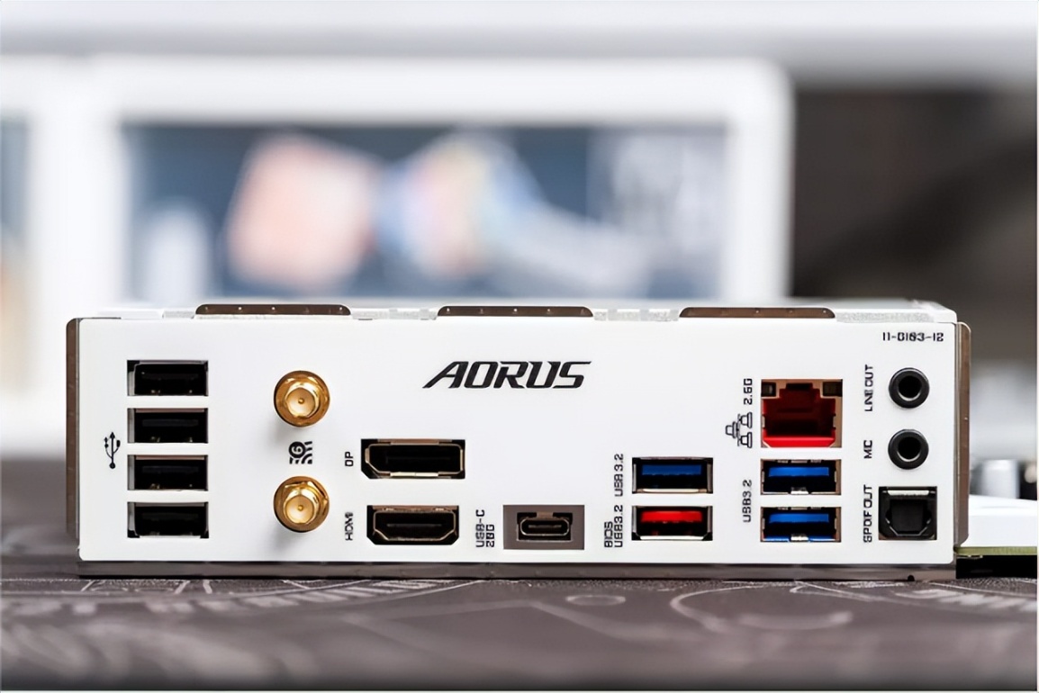 主板背板上提供了9个USB接口,其中包括4个USB 2.0/1.1接口、3个USB 3.2 Gen 1接口(蓝色)、1个USB 3.2 Gen 2接口(红色)和1个USB 3.2 Gen 2×2(Type-C)。有线网卡的速率为2.5 Gbps。无线网络支持WiFi 6E和蓝牙5.3。HDMI、DP接口和音频接口就是比较常见的规格。