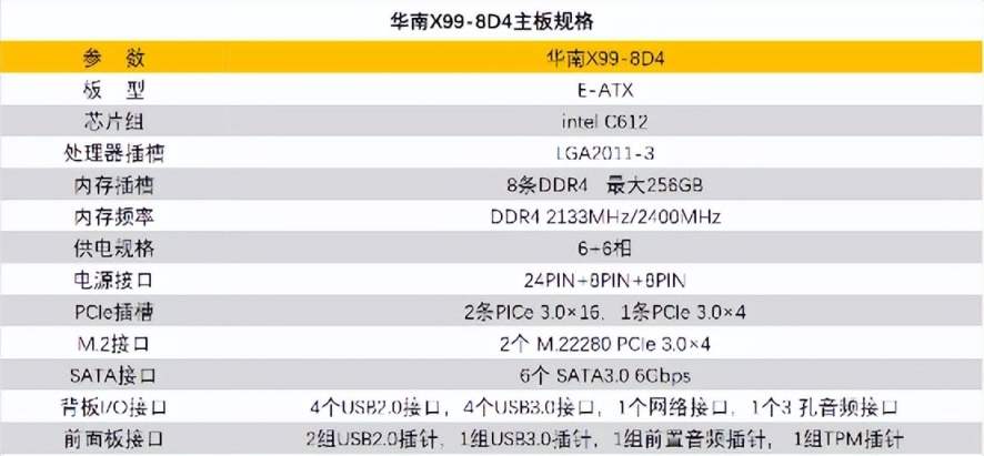 华南X99-8D4是一款双路服务器主板,虽然主板的价格仅有400多块,但是仍然支持DDR4内存、M.2固态硬盘等目前主流的硬件,在装机的时候可以有更丰富的选择余地。
