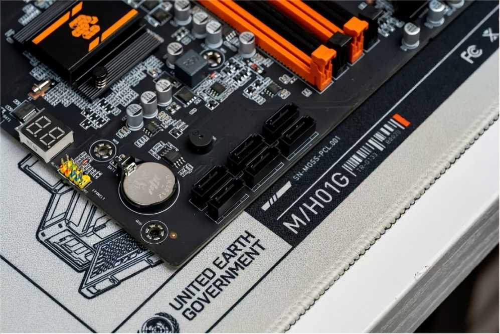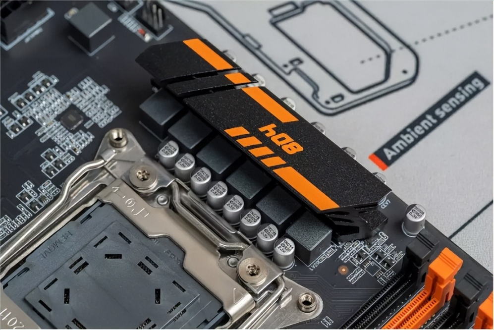 这款主板采用了黑色和橙色的配色,主板和大部分元器件都是用了黑色。