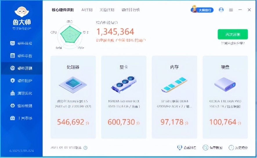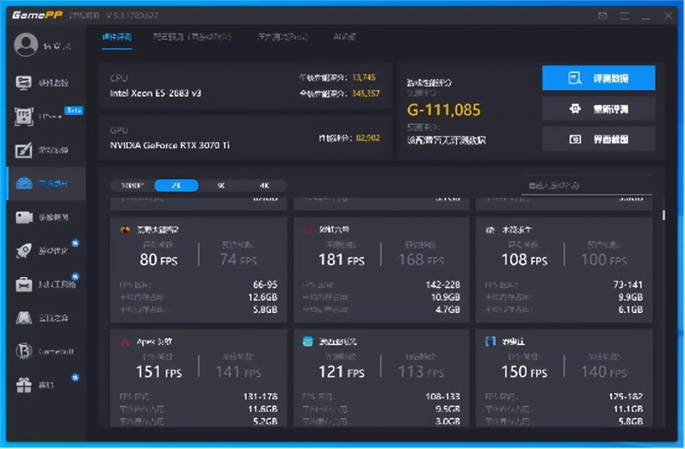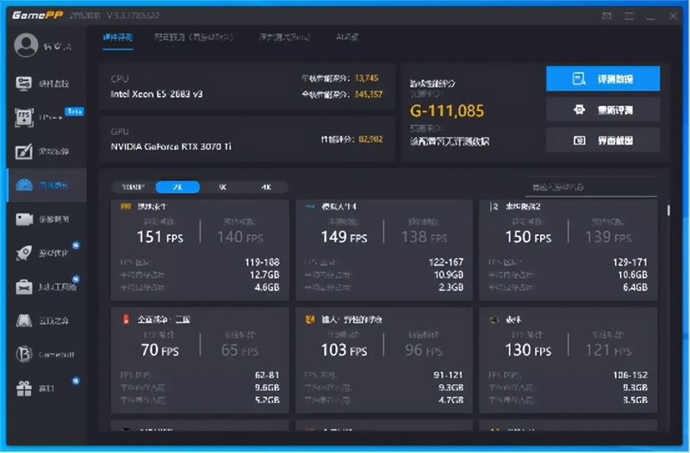 在这次装机中因为没有入门级的显卡,所以暂时用一张RTX 3070 Ti代替,属于不太合理的搭配。不过正是因为显卡性能的强大,使得这台主机几乎可以胜任绝大部分游戏。在鲁大师的综合性能得分约为134万分。