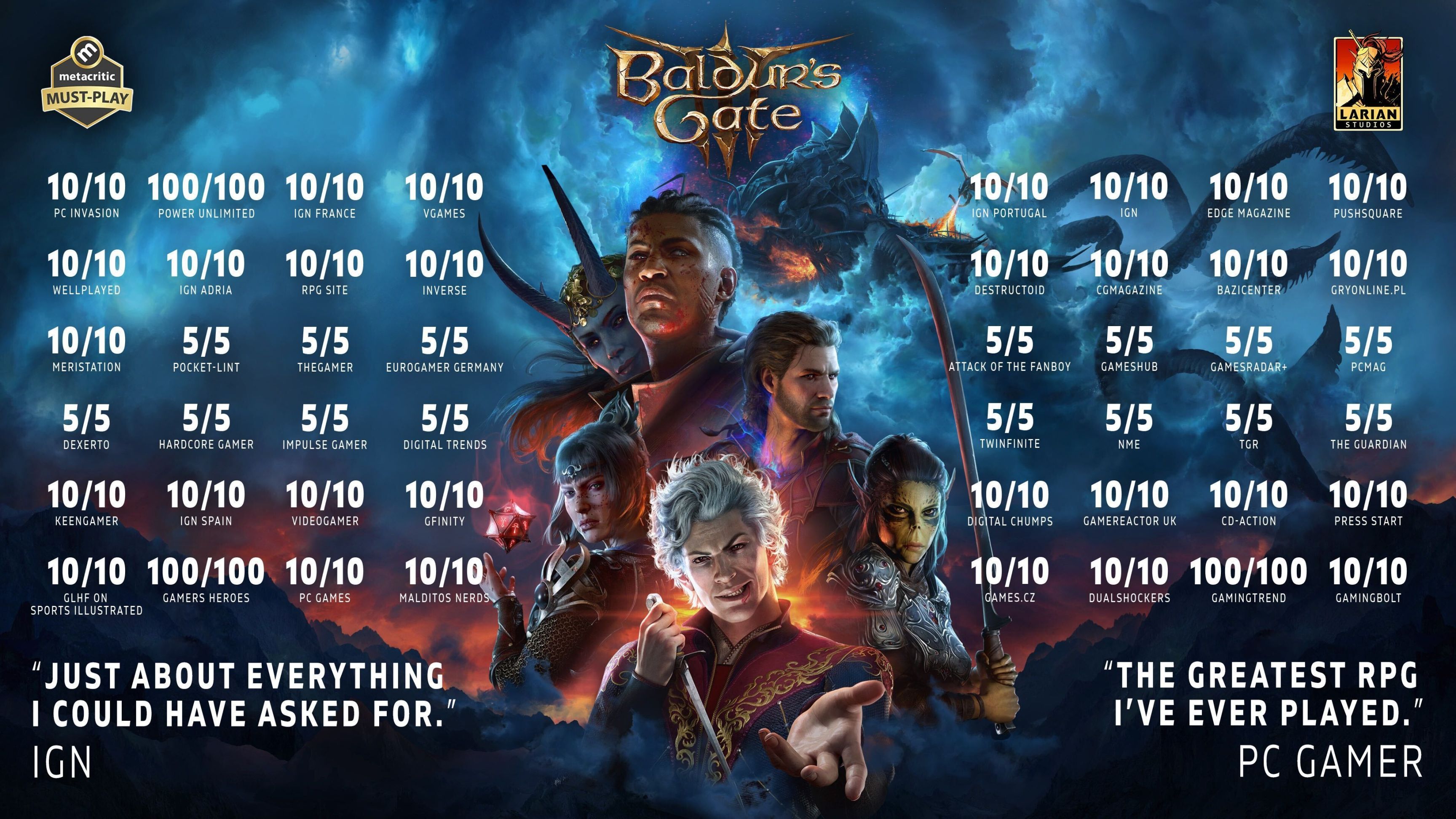 拉瑞安工作室发布了《博德之门3》的媒体荣誉宣传图,一眼望去全是满分。