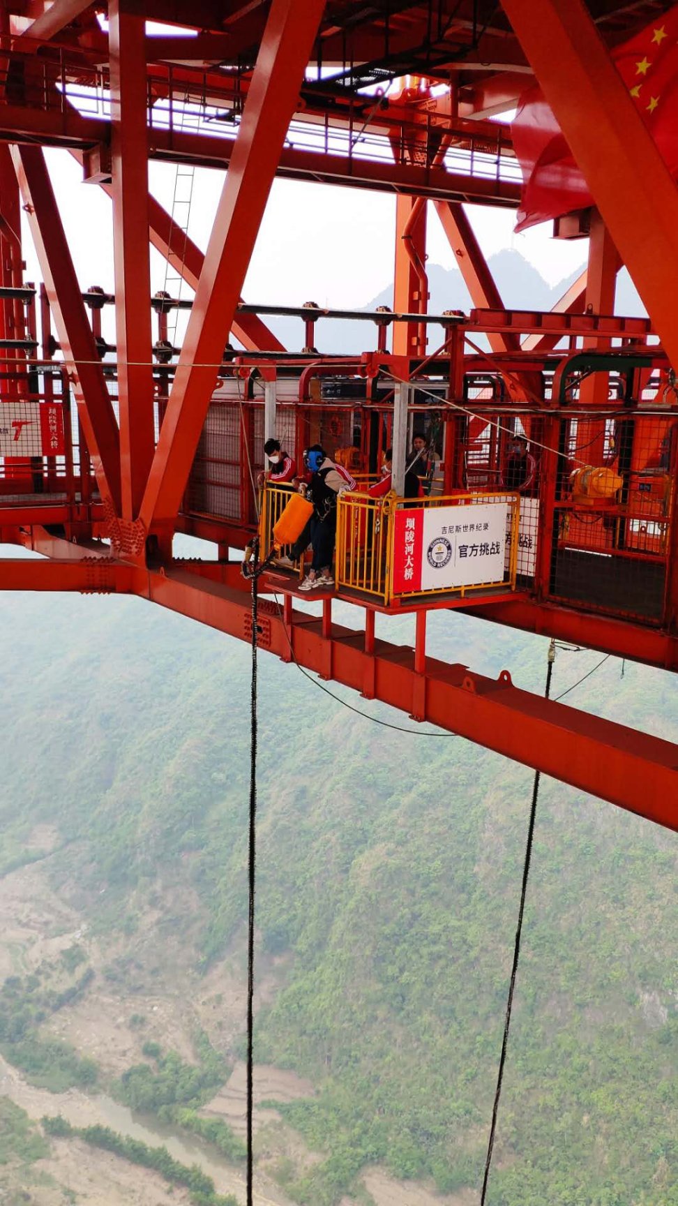 坝陵河大桥是主跨约1公里的单跨钢桁加劲梁悬索桥,桥梁全长约1.5公里,桥面距离坝陵河水面约400米。此项目是吉尼斯纪录认证的最高蹦级,370米一跃而下,不管什么苦大仇深都飘到九霄云外。