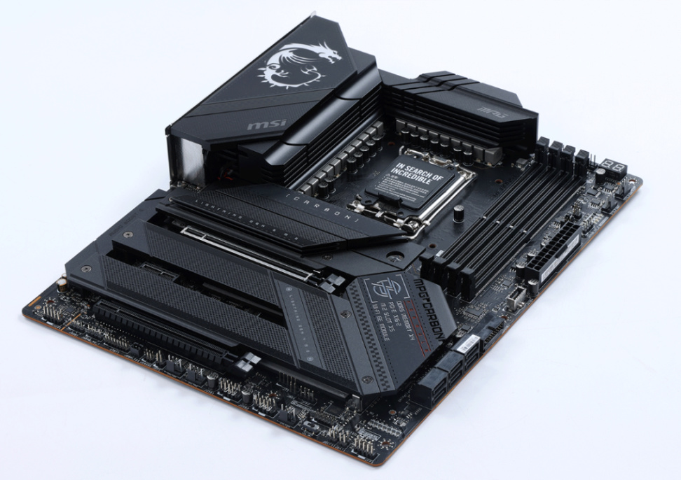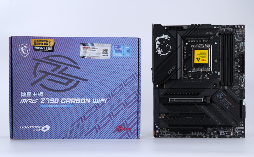 主板方面,咱当然也不能寒碜,直接无脑也得上个Z790。首选其实是最新版本的790刀锋MAX,但装机时板子还在路上,就只能找来手上这款定位更高端的微星MPG Z790 CARBON WIFI暗黑主板顶上。