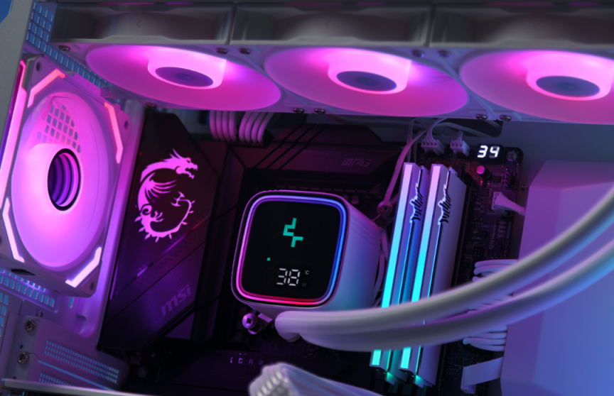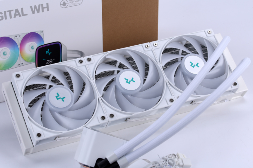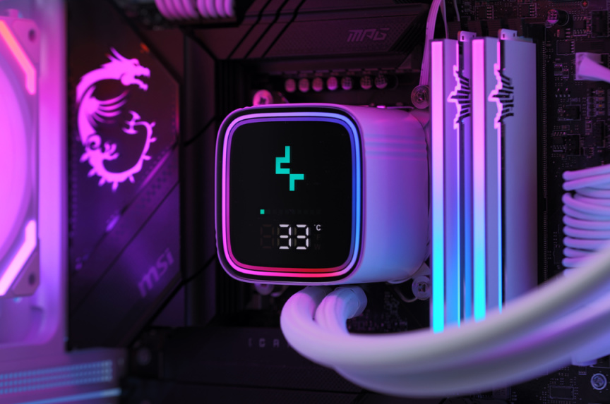 都2023年了,冷头还不带屏,真有点说不过去了。咱今天选用的散热是九州风神冰堡垒青春数显版白色360一体式水冷。