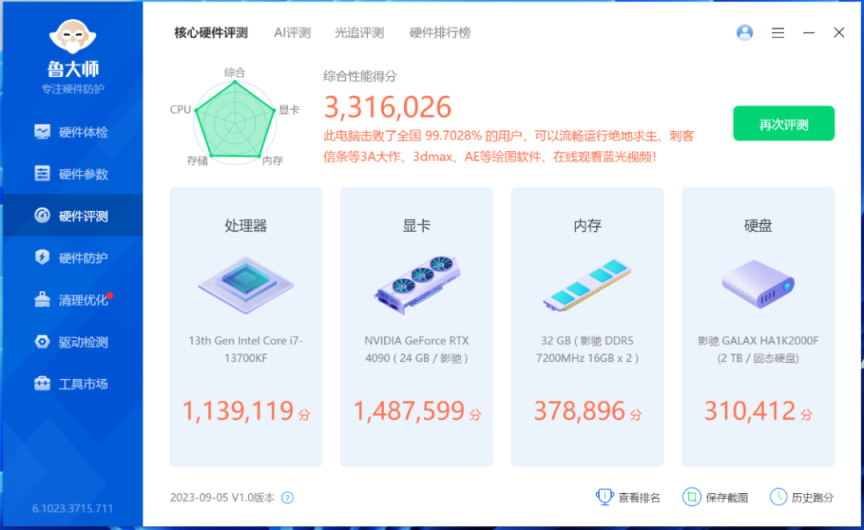 至于硬盘,pcie4.0和大容量都是刚需,但是对游戏性能其实影响不大,咱选择的依旧是来自影驰名人堂系列的HOF Pro30 2T M.2固态。