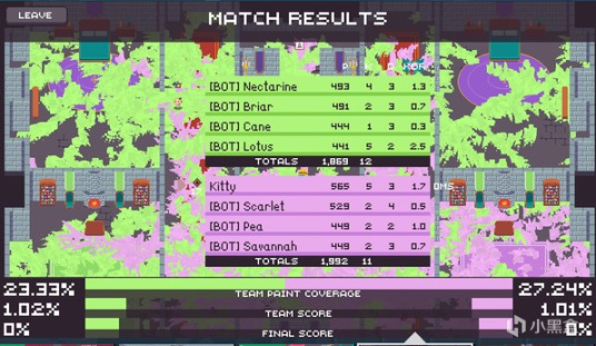 一款2D版的斯普拉頓(噴射戰士),在平面射擊的視角下拿着武器隨意噴塗或是直接擊殺對手,倒計時結束後地圖噴塗面積大的一方獲勝