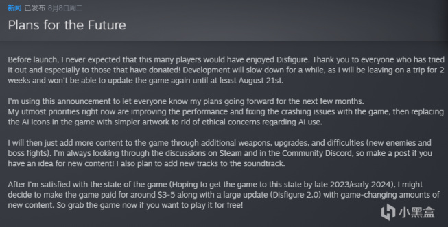 遊戲當前剛剛發佈一個月,總體評價好評如潮,作者宣佈將會在2023年年底轉變爲付費模式,當前可以免費入庫喜加一!