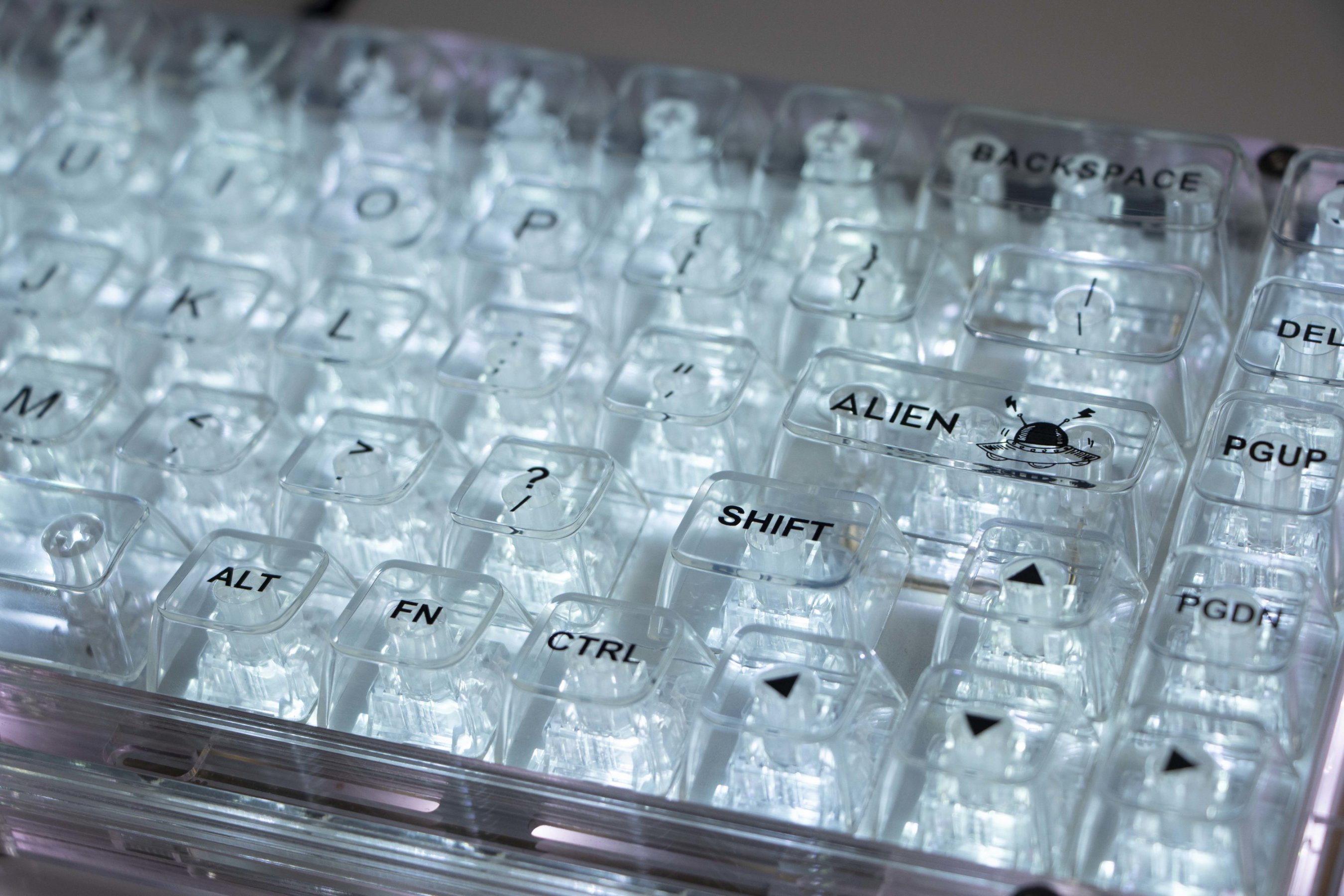 首先键盘的组成简单来说就是套件,轴体和键帽,得益于热插拔功能,到手仅需轴体针脚对准轴座按下(注意先检查针脚,歪了掰直,怼弯了掰直还能用)然后装键帽即可。
