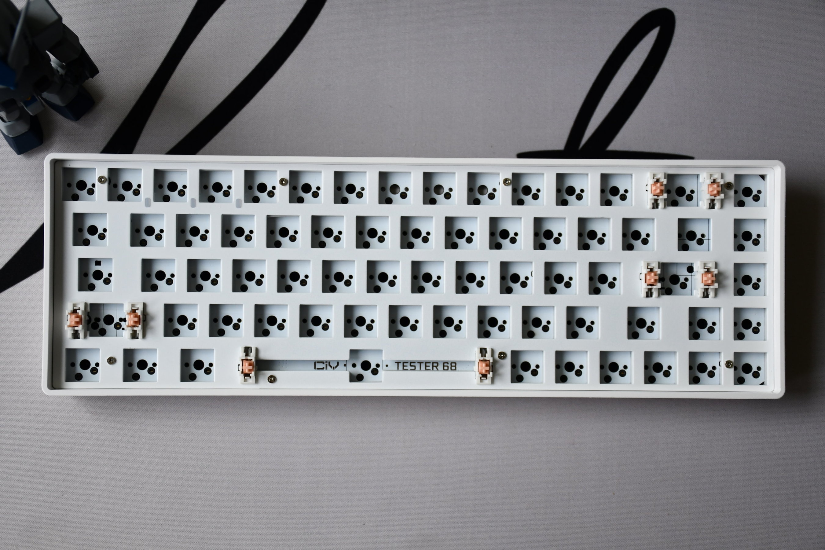 简评:套件选择了被称为“试轴器”的ciy68,价格较低,优点是底部在填充以及贴上美纹纸,定位板下换上裁剪的包装泡沫棉声音很好(当然不搞也可以用,不过既然选择了套件自己组装还是可以自己搞一下的)当然缺点也很明显,键盘没有灯光且无线回报率仅有125hz,虽然实际体验上是体验不出来的(过去我拿这个玩好几个月apex)但是大多数人都会觉得膈应,所以更多的把这个作为入门套件使用。