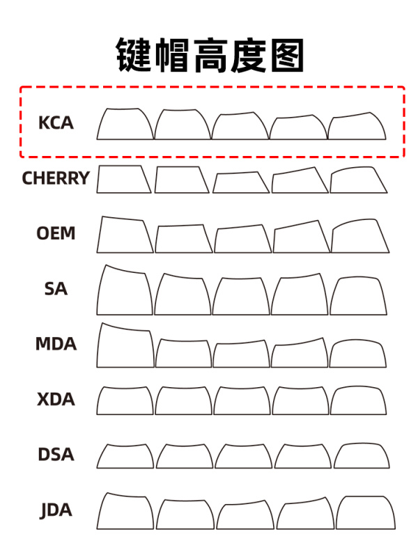 键帽每排高度分为r1,r1,r2,r3,r4,r4/r5(根据不同键帽模具,有些最上面一排有r5高度)因此像68,75配列侧边一排请按照高度装键帽,有些键帽少的可能让你用个性按键代替。如果套件为反装等避免用高度较低的键帽,或者提前测试轴体会不会卡键帽,否则会感觉按不下去。