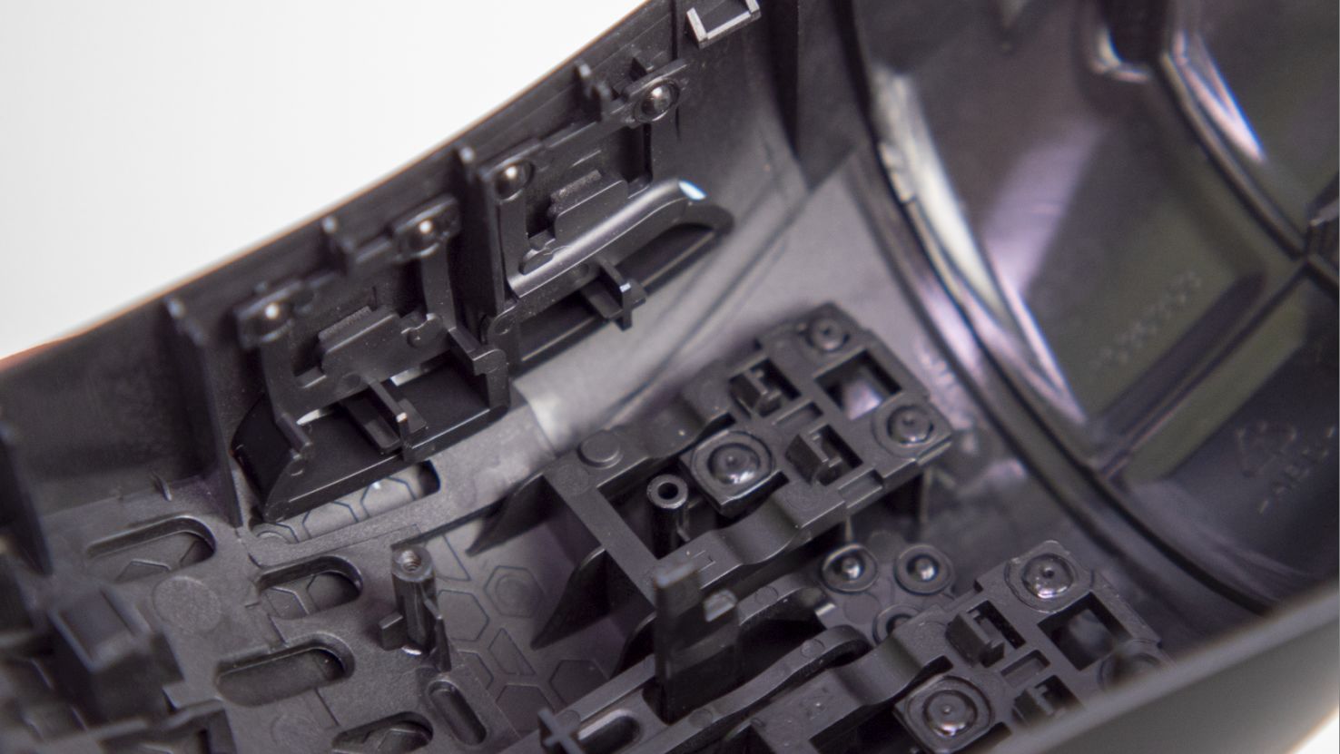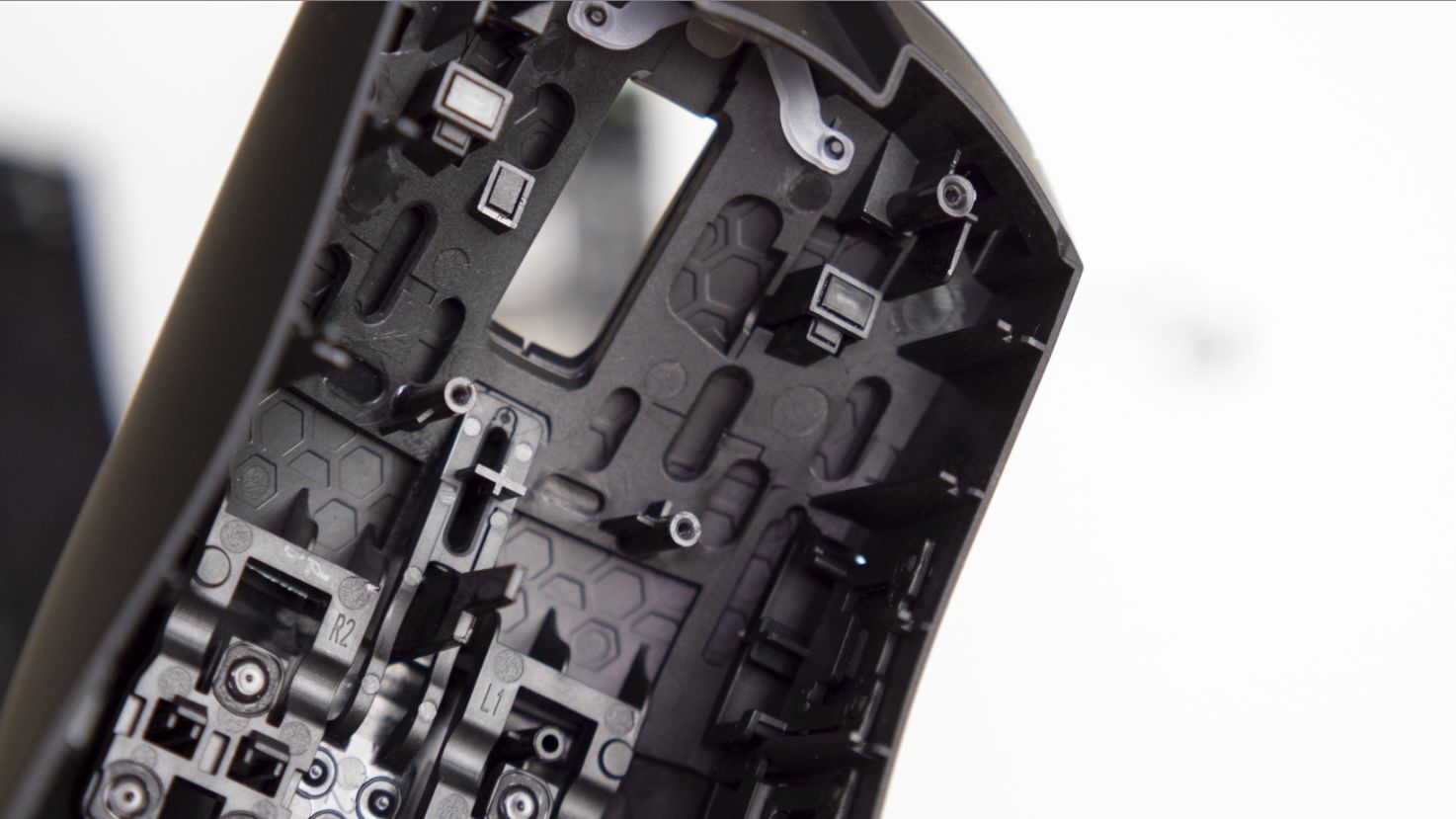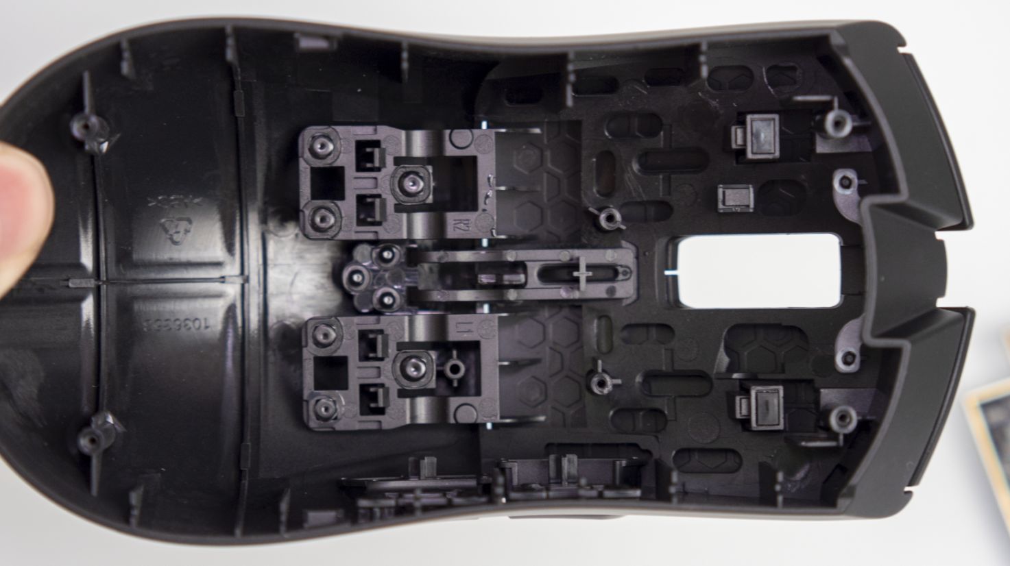 上盖内部的制造工艺仍然保持了雷蛇一贯的超高标准。所有塑料件都采用了一体成型注塑和全热熔固定工艺,在主键下方可以看到大量减重槽。