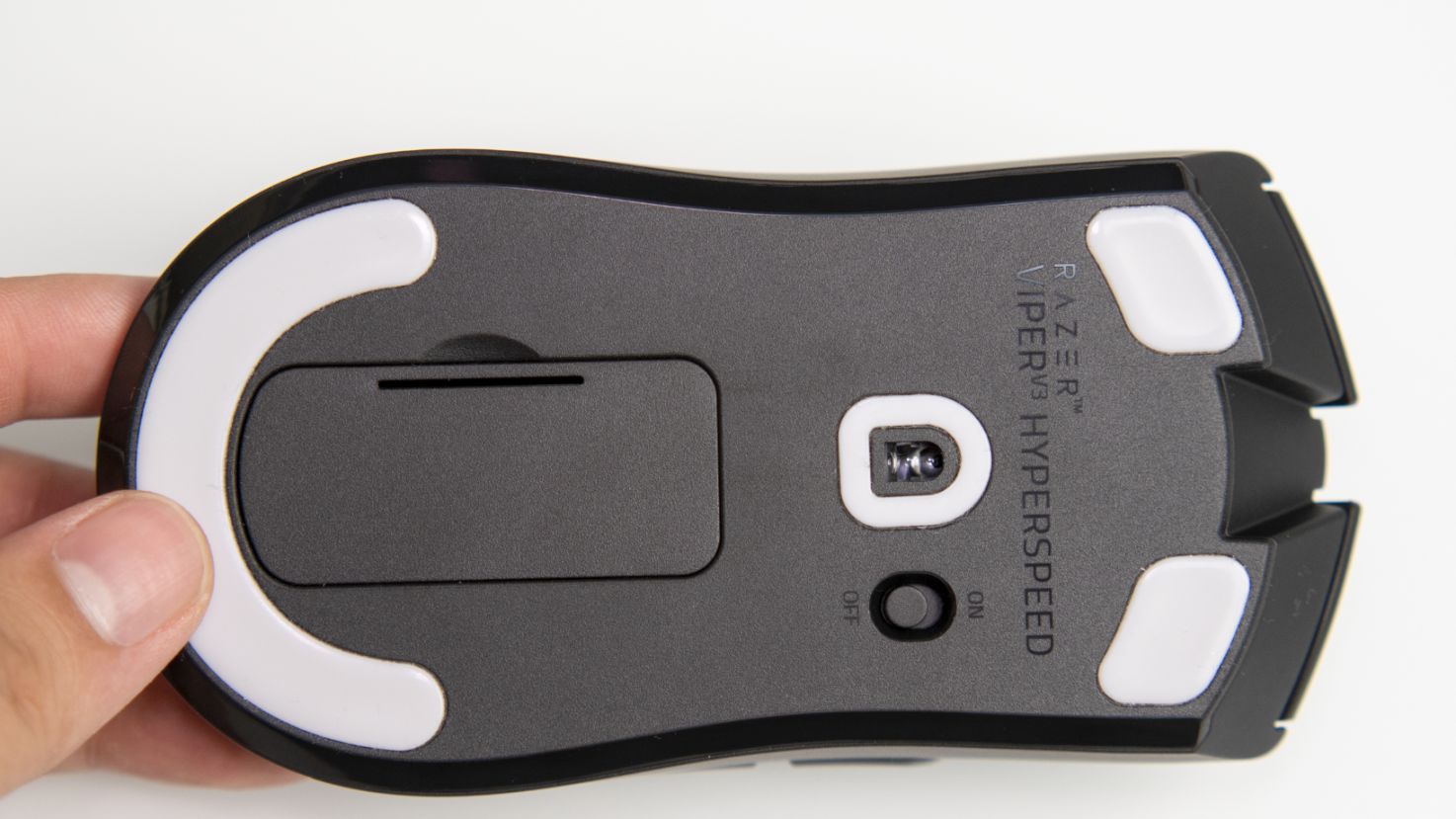作为雷蛇的传统,极速版底部都采用5号AA电池供电,电池仓内有2.4G接收器收纳仓。