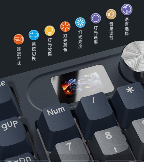 - 配有彩屏,金属旋钮,可以多方位调节键盘功能
