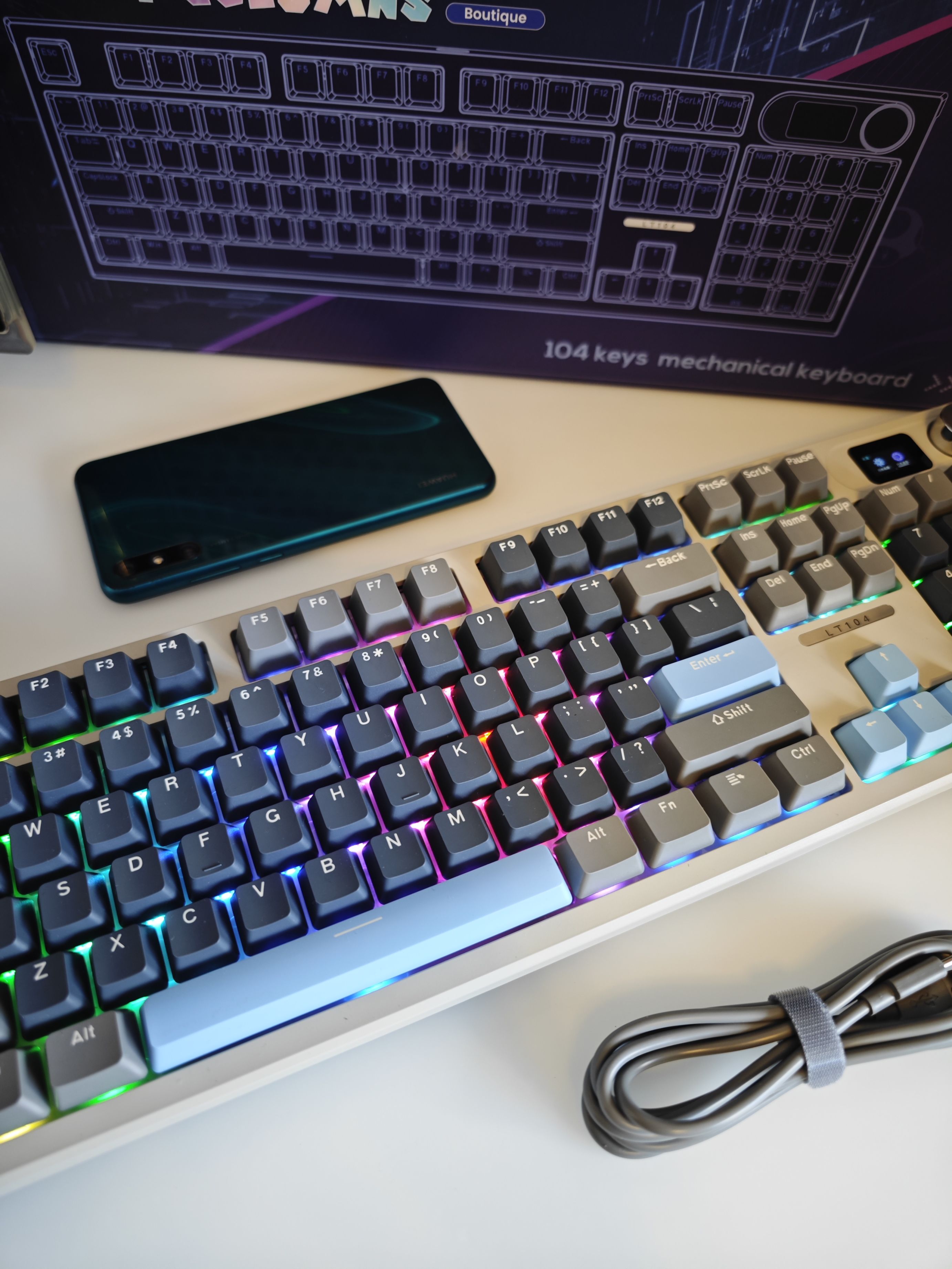 颜值让人耳目一新,打字手感非常润,液晶彩屏和金属旋钮构成的调控系统有趣又使用,5000mAh超大电池容池,无线连接稳定且延迟低...这些全是能从LT104夏初上找出来实打实的优点。如果你预算只有300,你在找一款文能办公打字写码,武能游戏叱咤电竞风云的键盘。那么LT104夏初可能是你目前在104键机械键盘中,能找到最好的选择之一!