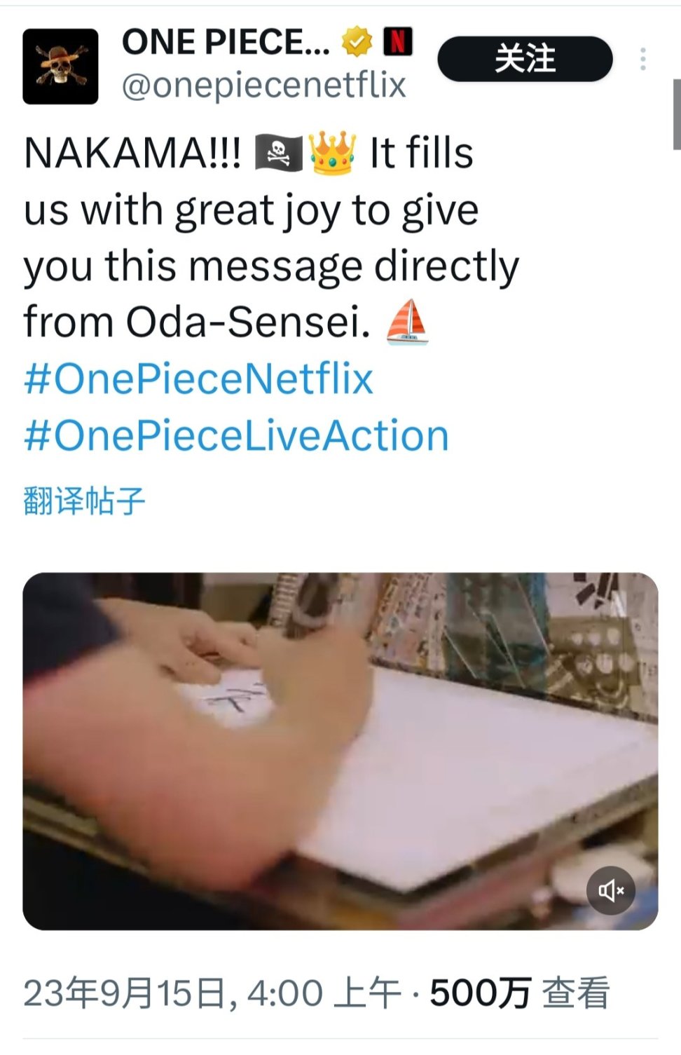 在2023年8月28日,Netflix推出了《海贼王》的真人剧的第一季,共有八集。该剧在Netflix上线后,获得了优秀的观看数据和口碑