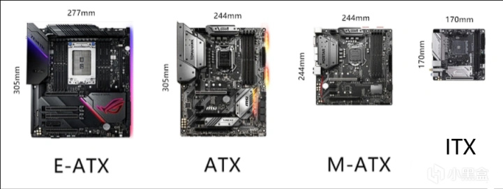 另外还有一个小细节,主板和机箱是有大小号差别的,比如主板有E-ATX、ATX、MATX、MINI-ITX(下面统称ITX)等型号,从前到后依次是由大到小,市面上大多就这四种型号最常见,大致可译为加强型、标准型、紧凑型、迷你型,E-ATX就是加强型,是通常情况下拥有最大扩展接口、扩展插槽的主板,标准型的ATX就是所谓穿衣服的XL级别的,拥有的扩展接口较多,满足一些对扩展有刚需但不多的用户,中号就是MATX,是大多数人需要的那种型号,这种型号有扩展,但不多,基本上图一乐,但是偶尔需要的时候能有,足够打游戏、PPT办公等人群使用。ITX就是迷你型的主板,这种主板仅有最少量的、能保证电脑使用的接口,主要是为了便携性,ITX的机箱通常也会做的特别小,相比于较多的ATX机箱,ITX机箱几乎是接近ATX的四分之一,所以ITX的扩展性约等于0。而相对大小的,机箱也是有这种的分别,但大的机箱大多都能支持小的主板,但小的机箱……肯定放不下啊啊啊啊太大了真的放不下啊啊啊求你了ITX真的放不进去ATX板子啊啊啊啊啊啊