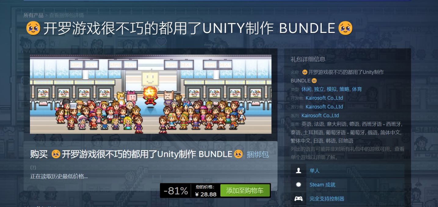 受Unity引擎收费影响,开罗游戏上架了一款新的捆绑包