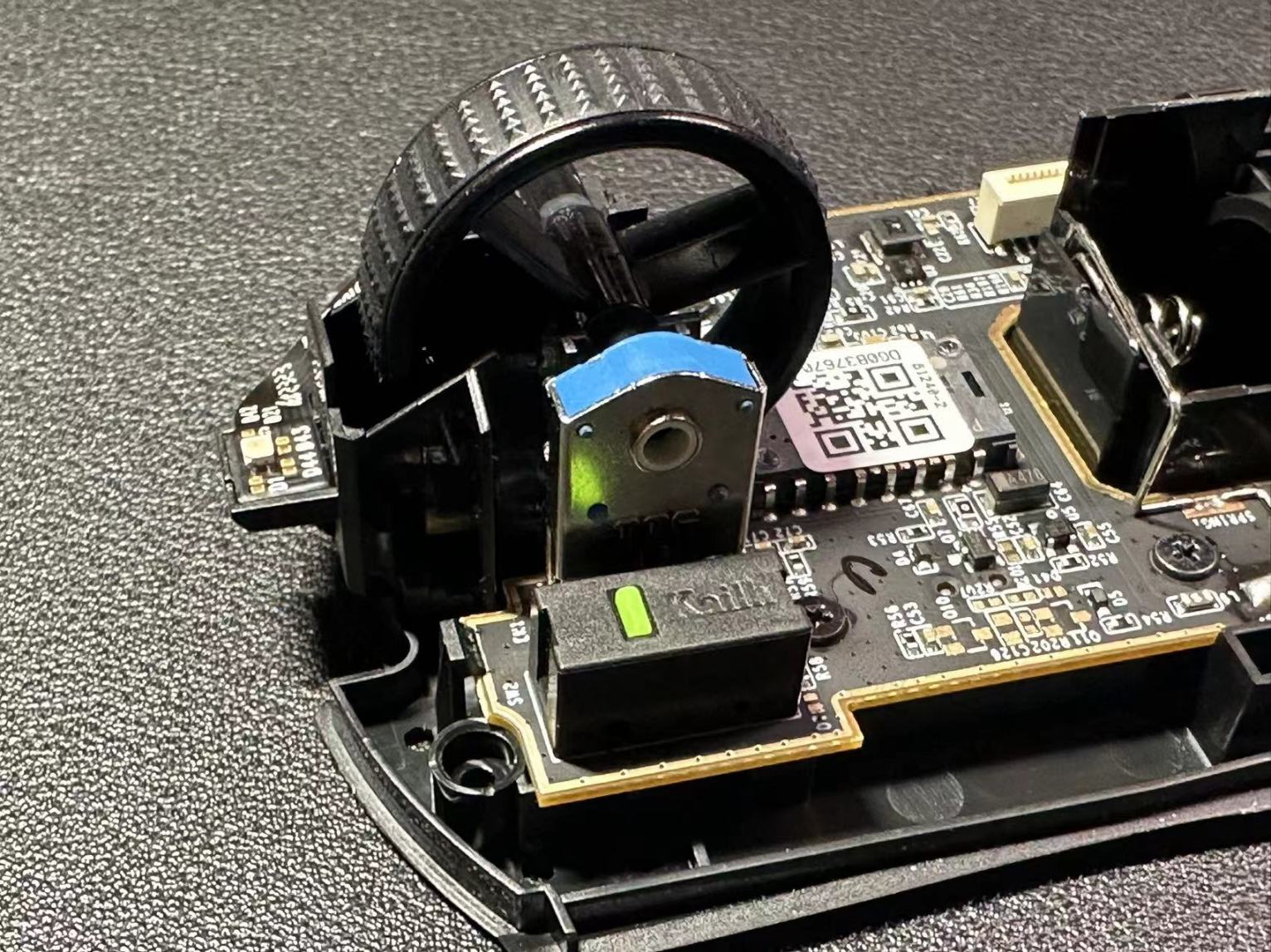 编码器方面则是采用我们常见的TTC编码器,而滚轮也是做了开孔减重处理。