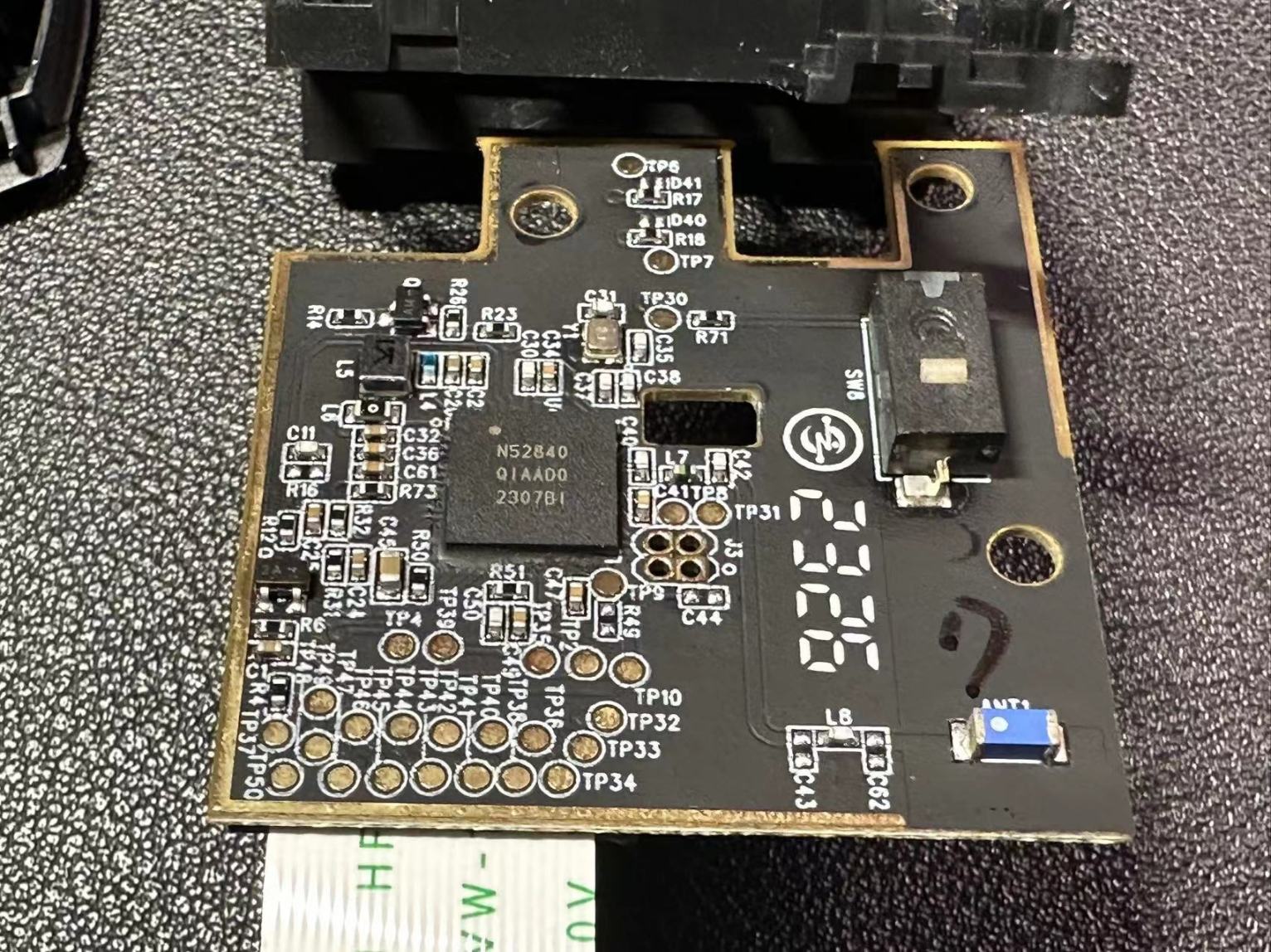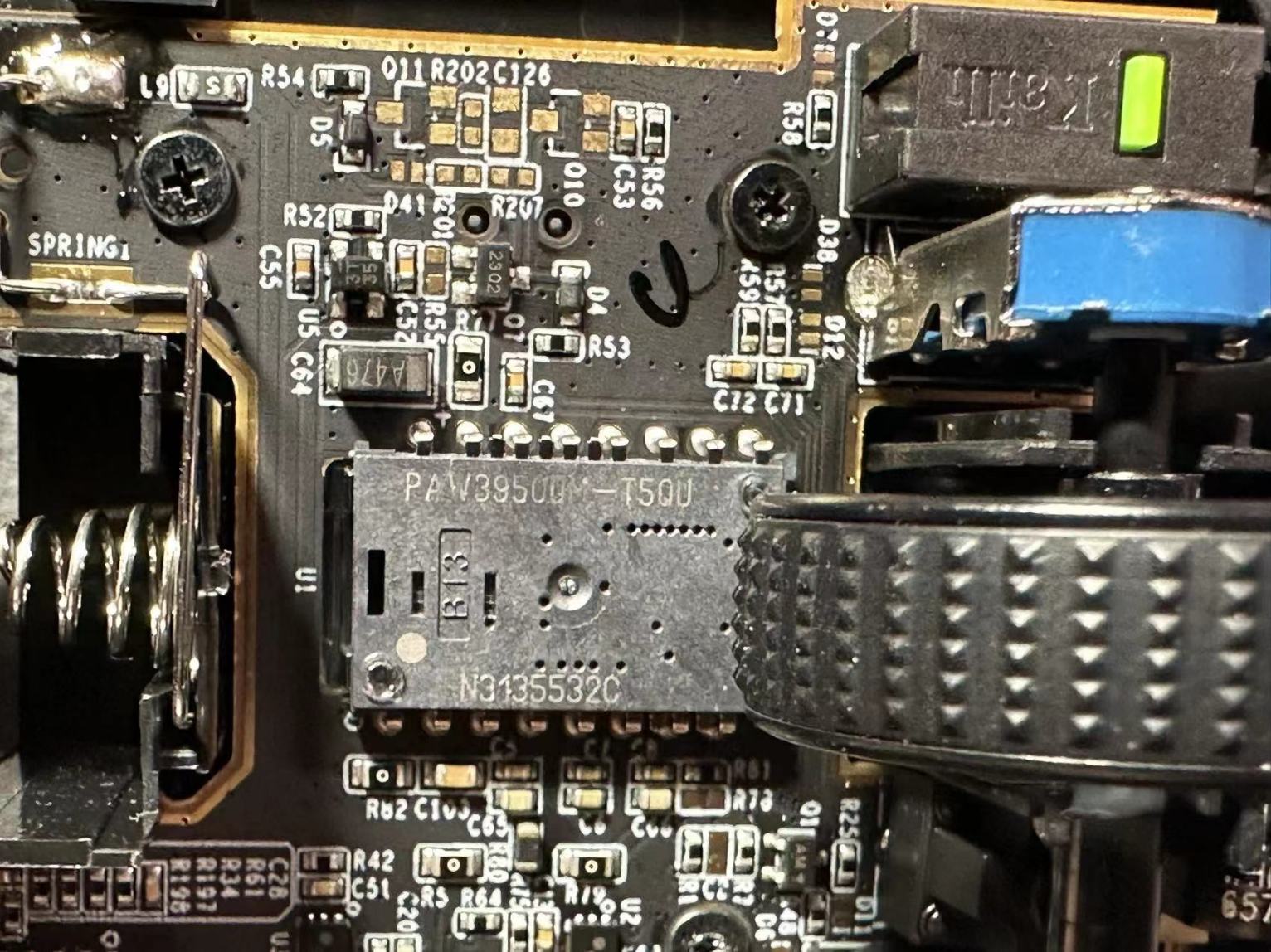 无线IC方面采用的是nrf52840内部搭载雷蛇自研HYPERSPEED无线技术,拥有超低延迟,支持4Khz回报率。小板周围的金属也是为了防干扰设计,而那颗长风绿点微动则是DPI键。