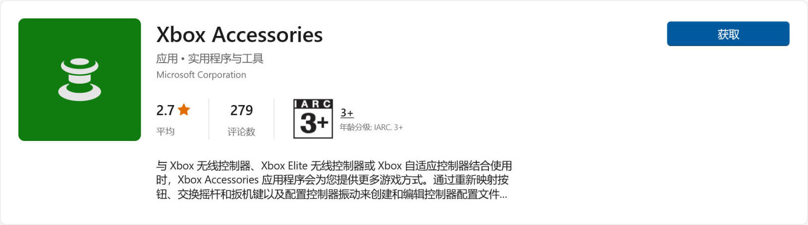 微软商店下载这个软件,可以用来更新xbox手柄的固件。假如你买的xbox手柄是不带无线控制器的,用蓝牙连电脑有时候经常连不上,你可以考虑用xbox accessories更新固件,反正我更新完后蓝牙连接再没出过问题,当然如果你手柄没问题就别折腾了。