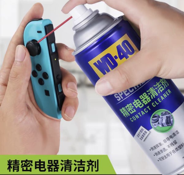 WD40精密电器清洁剂处理漂移的争议非常大,有的人说只要漂移了就喷一下,立马见效;也有的人说没什么用,指标不治本,甚至对手柄有损害。其原理是清除内部的碳粉,或许对轻度使用的手柄有效,但我的几个重度使用的手柄喷了之后均毫无改善。如果你真的要用这方法,别买错清洁剂了,因为WD40系列产品非常多。
