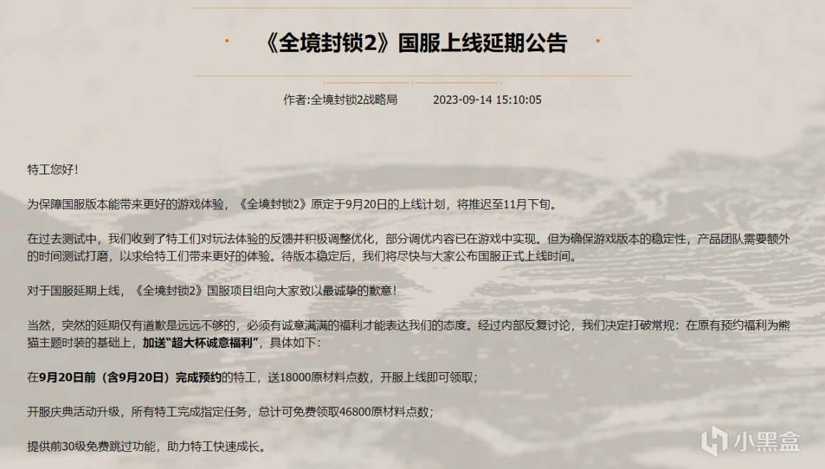 据全境封锁2国服官网的消息,《全境封锁2》原定于9月20日的上线计划,将推迟至11月下旬。