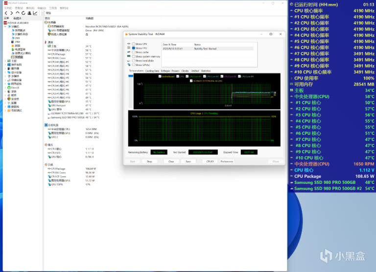 因为i5-13490F的满载功率本来就不大,微星MAG CORELIQUID M360迫击炮轻松压制,通过AIDA64单烤FPU 10多分钟,CPU的温度还不到60℃。