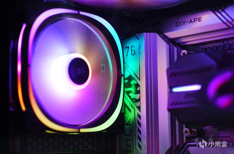 超频三自家的EF120颜值非常不错,采用了双光圈设计,支持5V ARGB灯光同步;内置7片高性能低噪扇叶,风扇转速为600~1500RPM,最大风量61.3CFM,最大噪声为25.7dBA。配合超频三自家的H01集线器,可同时接入8个风扇,开启PMW调速与RGB灯光同步。