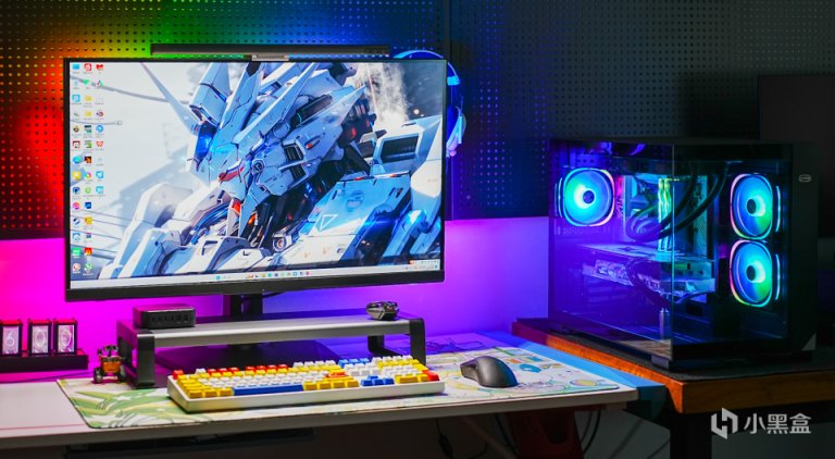 显示器为微星MPG321UR-QD,属于一款电竞级显示器,具备4K分辨率+144Hz屏幕刷新率,并且支持量子点技术,色彩表现非常突出。所以不仅仅是可以享受出色的游戏体验,强悍的色彩表现也让修图剪视频等工作都可以轻松应对。