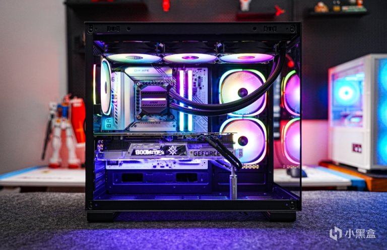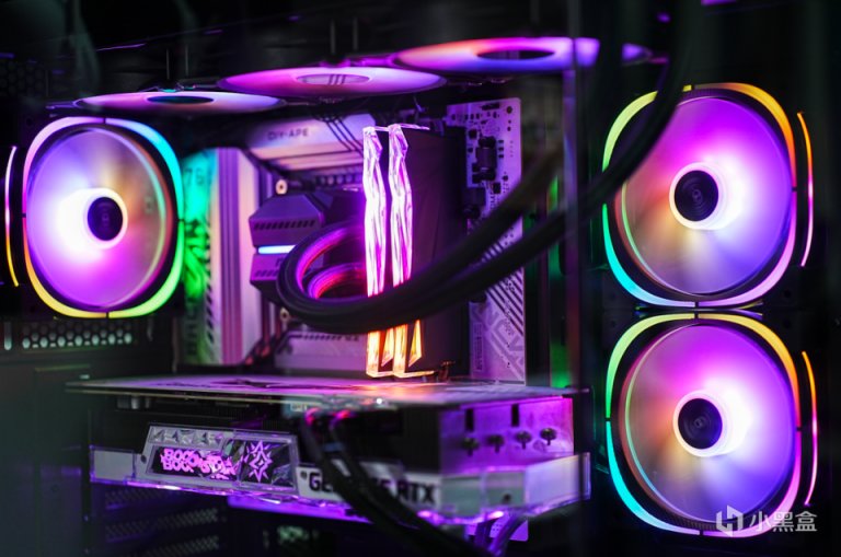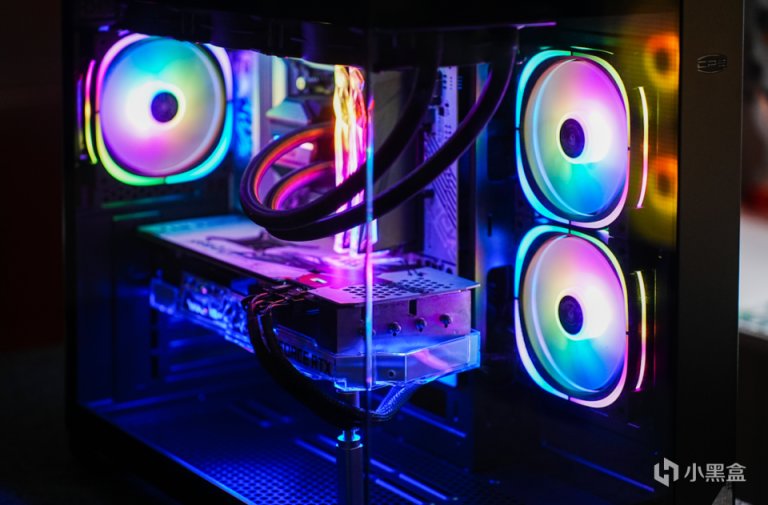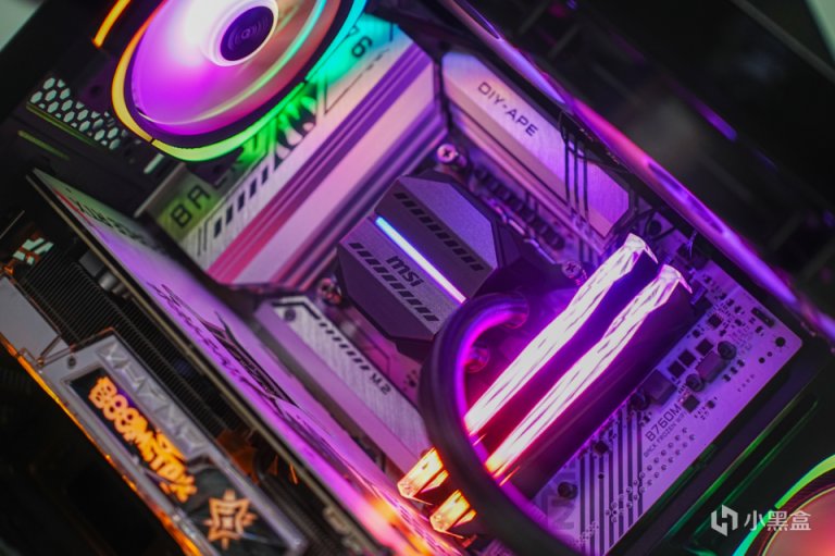 水冷用的是微星MAG CORELIQUID M360迫击炮,该水冷不但外观设计到位,性能表现也非常不错;其水冷头内部搭载了一个三相马达,增强性能的同时抵消水泵的震动,可有效保证水泵长时间高效稳定的运行;配套自家的RGB风扇性能也很给力,采用FDB动态液压轴承,最大风量为94.65CFM,最大风压为3.68 mmH20,最大噪声为37.6dBA。