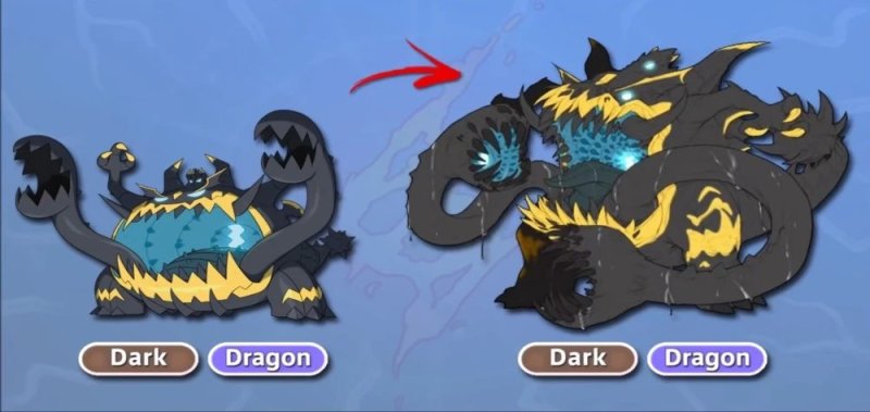 - 相比较火焰乌龟来说,同为第七世代的异兽宝可梦恶食大王反而有一点龙元素。