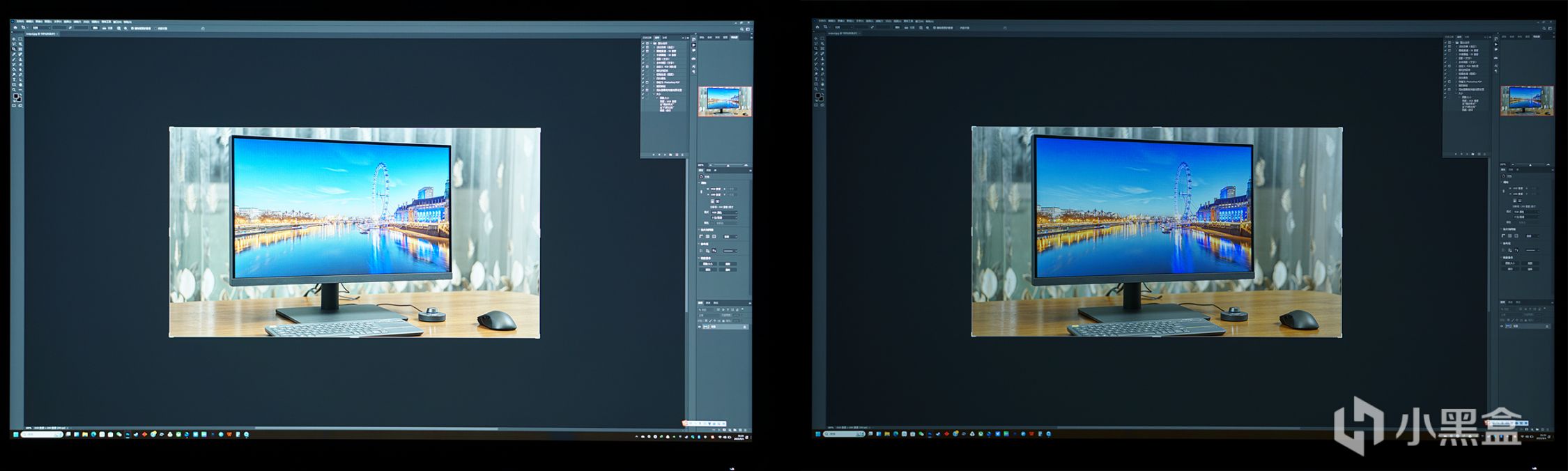 比如说,很多喜欢用PS的小伙伴都更乐于在黑暗的环境(难道是暗房情节?)之中去设计自己的作品,明基PD2705U的暗房模式则能够有效地优化图片的明暗及对比度,为我们带来更为敏锐的视觉感受。左边没有开启暗房模式,右边开启了暗房模式。