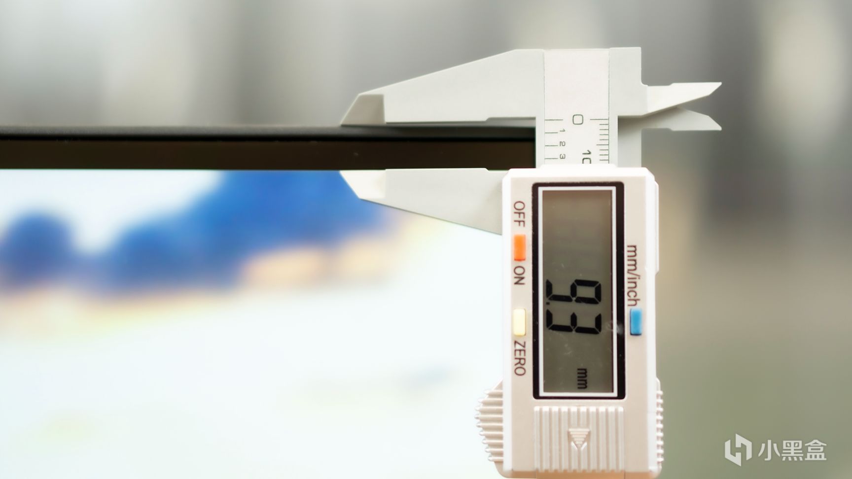 它采用了窄边框设计,塑胶材质,上左右的边框宽度大约在9mm左右,下面的边框依旧是传统的宽边设计。