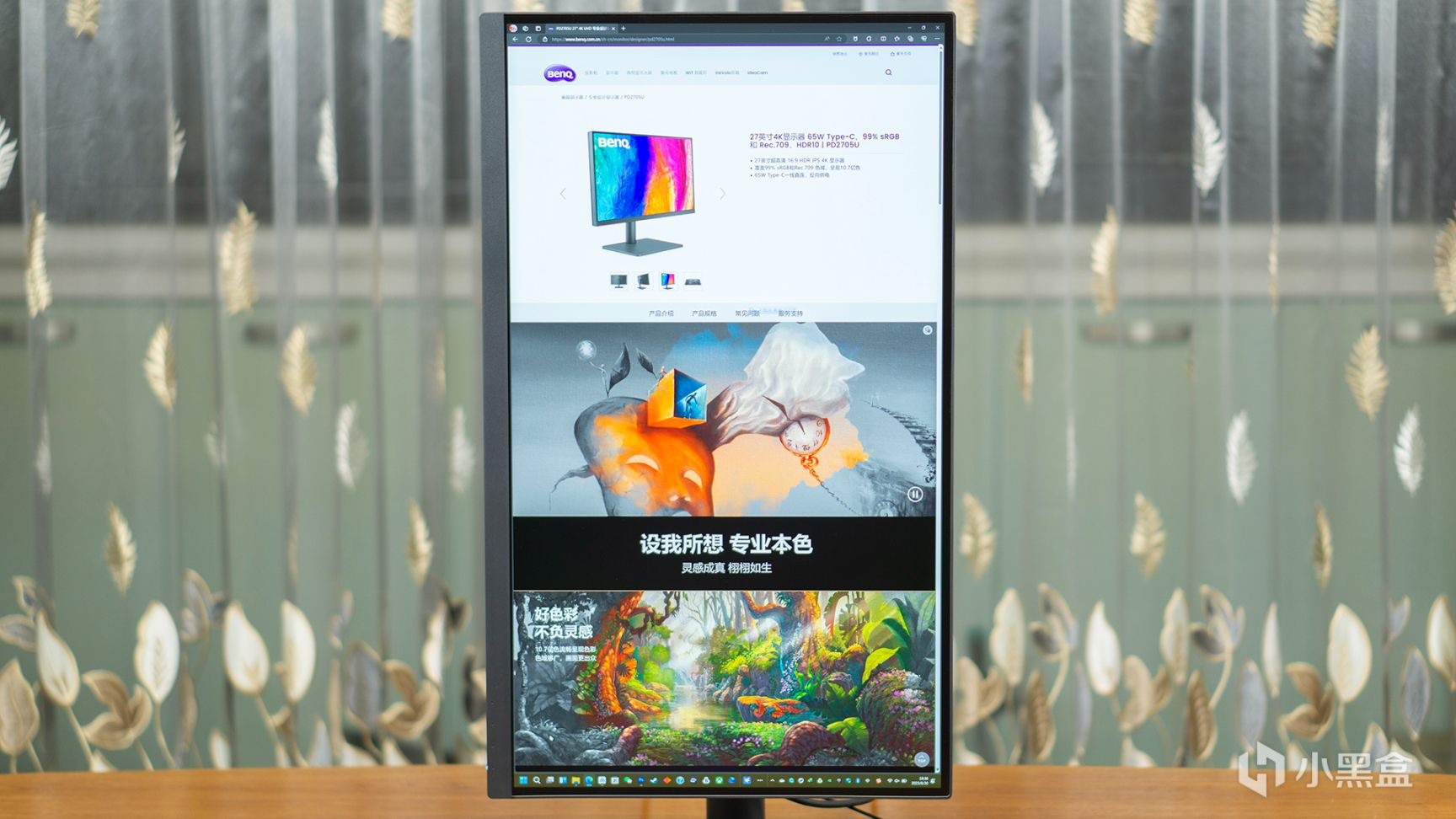 此外,明基PD2705U还可以轻松切换横竖屏幕使用,这也可以说是页面设计党的福音啦!27寸的屏幕,竖向使用,它也会带给我们一种“看展”的感觉!