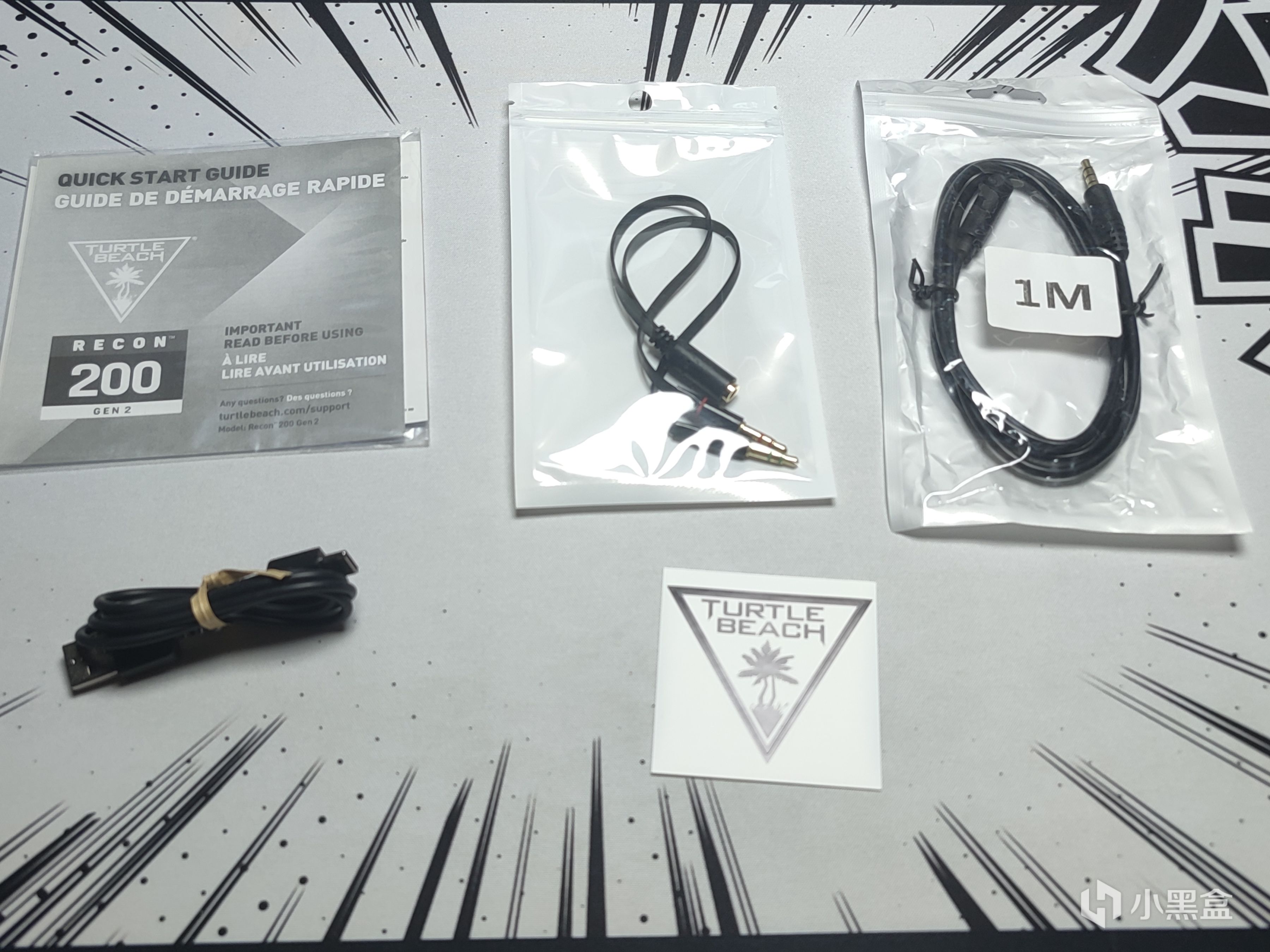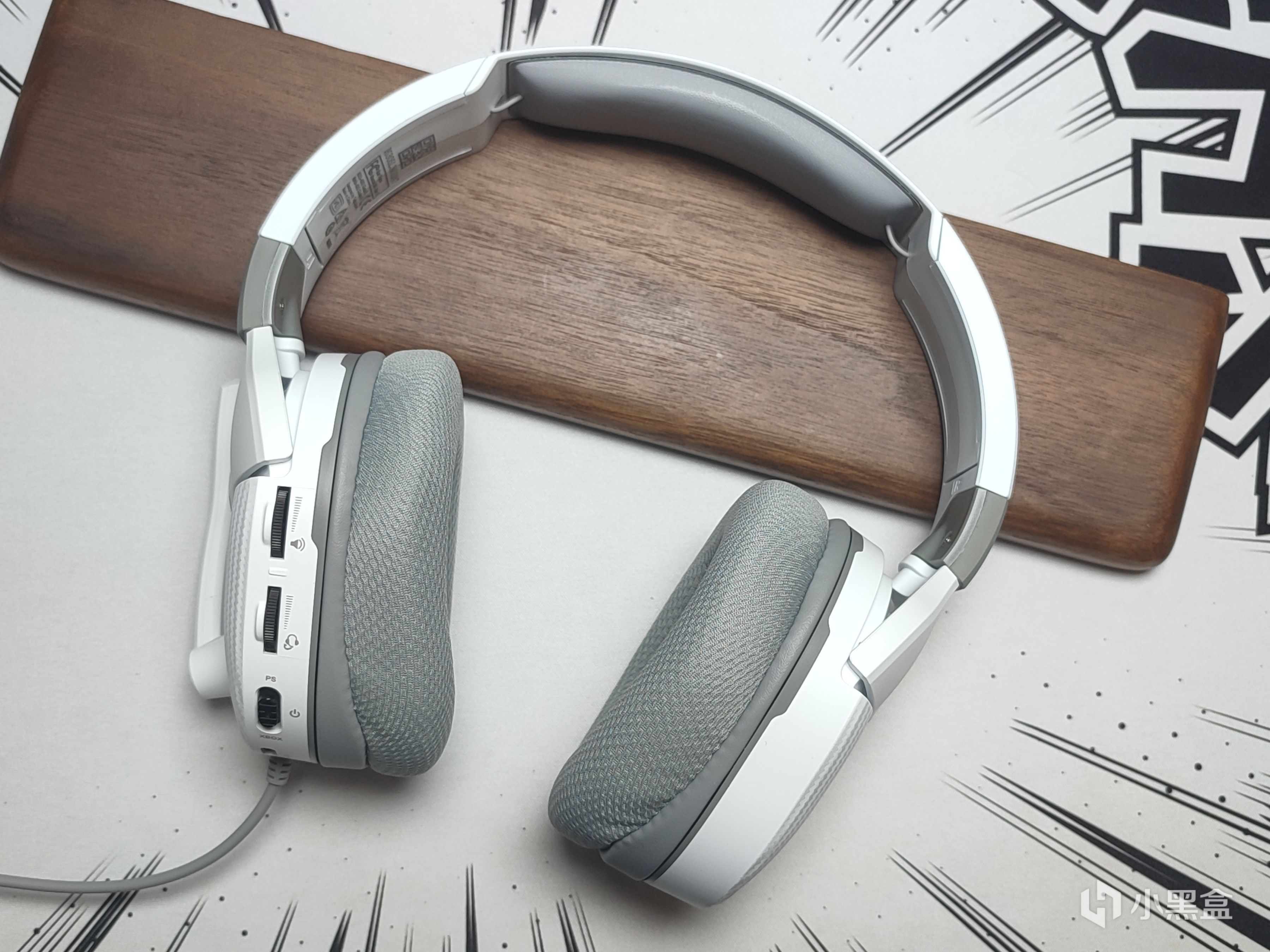 外包装采用的是银灰色,中间带着些渐变点缀,包装上能看到很大的二级本体,这个到后边再说,右上角是一些产品卖点,这也解释了标题所说的眼镜党的福音;左边是乌龟海岸的品牌以及产品型号,比较引人注目的应该还是最下方的三种颜色,分别代表了三家主机阵营——XBOX/PLAY STATION/SWITCH,也就是说这款耳机支持多平台,不过我手里没有这三家的主机测试不了兼容性