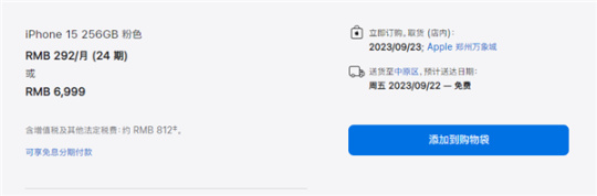 相比之下,iPhone 15标准版可就没那么受欢迎了,截稿前,部分地区依然显示可以9月22日送达。