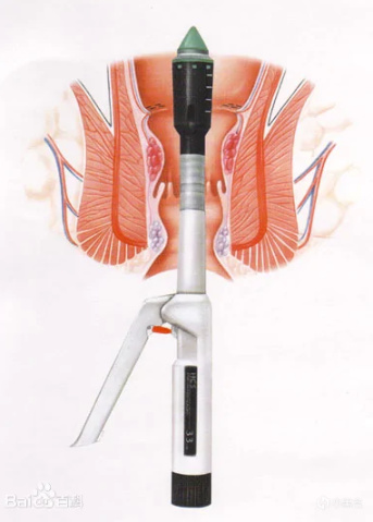 手术既切除了直肠、黏膜脱垂带,又阻断了直肠末端动静脉的终末吻合支,消除了痔疮发生的根源,对内痔、外痔、混合痔、环状痔、严重痔脱垂、脱肛等都有着非常理想的治疗效果。(手术大致方式如下图,但是有很多细节处理这个不太好描述。)