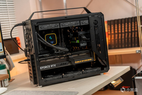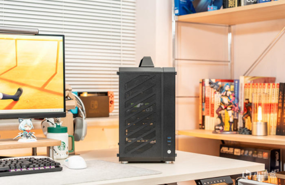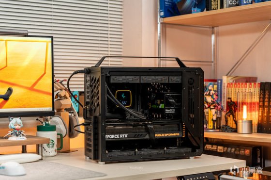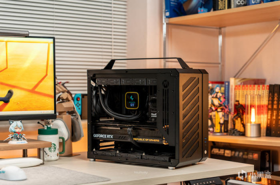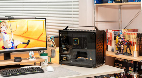 此次带来的是一台酷黑低调无光的设计师静音小主机,使用的是机械大师C34Pro机箱曜石黑颜色,配置为7950X+华硕ProArt X670E-CREATOR主板+玩家国度 ROG STRIX GeForce RTX 4090-O24G显卡的配置。机械大师的C34Pro虽然是其最大号机箱,但其实其尺寸只有429*205*349mm的长宽高,不过得益于其模块化的结构可将背部的PCIE安装位降低高度而支持MATX结构并使顶部或者更多的空间和冷排支持,也可以PCIE位旋转90°变成竖装显卡结构,同时前置安装得电源可在前置的顶部、底部、前挂钩、侧固定等多种安装位,为的是在有限机箱空间内支持更多的兼容性,通过调节可使单品配件最大可兼容360水冷、165mm塔式风冷、420mm长显卡、220mmATX电源,玩法多种多样,目的是在有限的空间内能满足大多数的兼容性。而这次为使得整机使用更静音,使用了必酷SILENT WINGS PRO 4 风扇,要是其严苛的制造工艺使扇叶与边框之间距离再度缩短,并使用了FDB流体动力轴承,六级风扇马达搭配三相交流变频器,并传承了必酷引以为傲的水波纹扇叶与漏斗状风扇边框设计,使得这把低噪音的标准12025风扇能在3000转下获得142.5m3/h的风量、5.31mmH2O的风压,而噪音只有36.9dB(A),不过这次使用了1600RPM并不损失性能下实现最静音的效果。