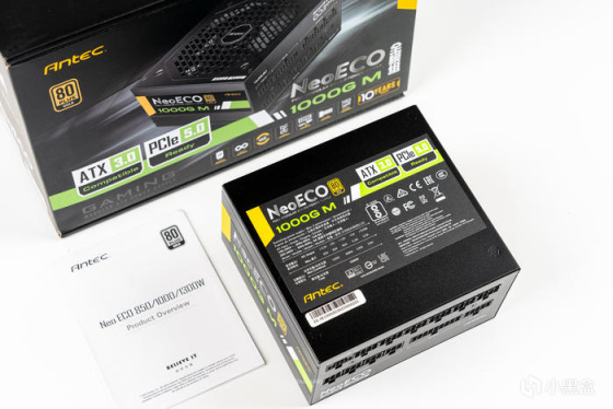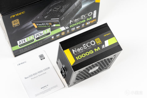 电源的侧面主要标注了型号为NeoECO 1000G M和 80PLUS金牌认证