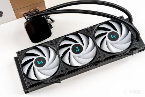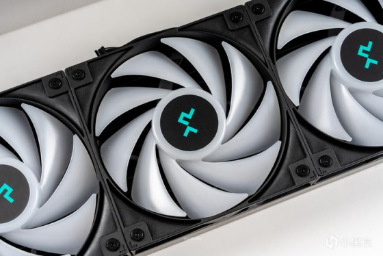 冰堡垒360青春数显版的全家福,这次水冷风扇出厂预先安装在冷排上,可省去了安装风扇的步骤,且风扇的灯光与风扇导线整合为7Pin接口,转接线可直连每颗风扇