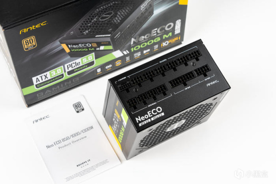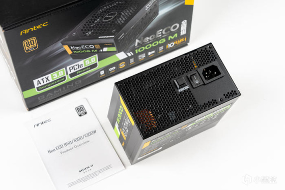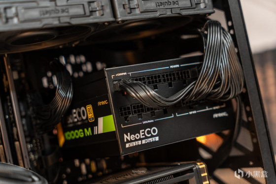 电源采用了安钛克新款支持ATX3.0和原生PCIe5.0的NeoECO 1000G M电源,其转换效率高达92.71%,采用了全日系电解电容、全桥LLC谐振架构,支持智能温控启停和使用了140mm小体积设计,一款高颜值的ATX3.0电源,且更支持10年换新的质保;电源配套的全模组线材也是扁线设计,使用下来感觉软硬适中