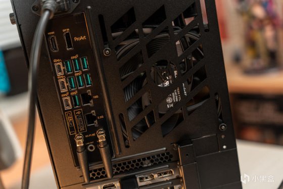 机箱背部的德商德静界SILENT WINGS PRO 4出风风扇,ProArt X670E主板在扩展性上采用了满配的接口布局如双USB4、10G与2.5G双网口、WIFI6E和多个USB3