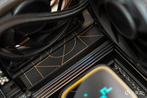 工业美学的无限反射冷头,高光黑透盖板和ARGB无限反射HALO光环,中间为九州风神的logo,下面带独立的水泵工作指示灯,可显示温度、功耗等信息,通过USB连接主板和安装软件实现,也非常方便