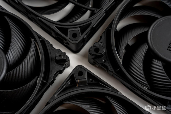 德商德静界(be quiet!)的SILENT WINGS 系列一直是低噪音风扇的代名词,今年已经更新到了第四代,而其特殊的水波纹扇叶与漏斗状风扇边框设计依然得到了传承,而SILENT WINGS PRO 4严苛的制造工艺使扇叶与边框之间距离再度缩短,使得这把标准12025风扇能在3000转下获得142.5m3/h的风量、5.31mmH2O的风压,而噪音只有36.9dB(A)