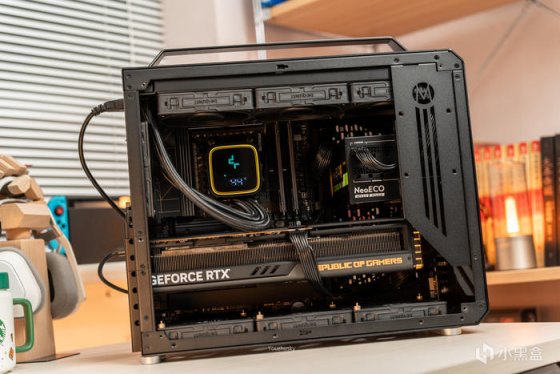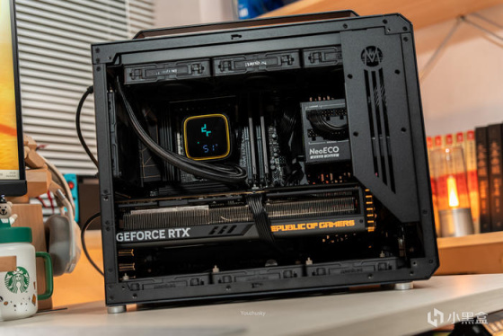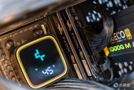 在散热方面,使用了九州风神今年数显系列的冰堡垒青春版LS720 SE DIGITAL,同样采用九州风神自研架构的第四代高能水泵和动态平衡泄压冷排,并加入了智能可视化数显屏,可显示基于HWiNFO引擎的CPU使用率/CPU温度/CPU功率数据。最后是电源使用了安钛克NeoECO 1000GM,其采用了全日系电解电容、全桥LLC谐振架构,支持智能温控启停和使用了140mm小体积设计,且更支持10年换新的质保。