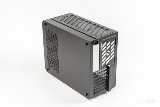 机箱的背面为2mm铝合金背板,前半部分做了镂空还能兼具通风效果