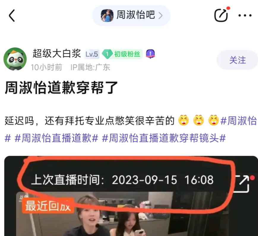 此外,一些敏锐的网友发现了周淑怡的道歉视频似乎是提前录制的。当天,周淑怡下午4点08分开直播,但在她道歉的时候,直播间的背景显示的时间是下午3点59分。虽然可能存在直播延迟的情况,但仍有一些观众怀疑周淑怡的道歉视频实际上是事先录制好的。而且道歉视频一开始,她甚至笑了一下,这是敷衍都不愿意走点心,这是否是在拿粉丝开玩笑呢?